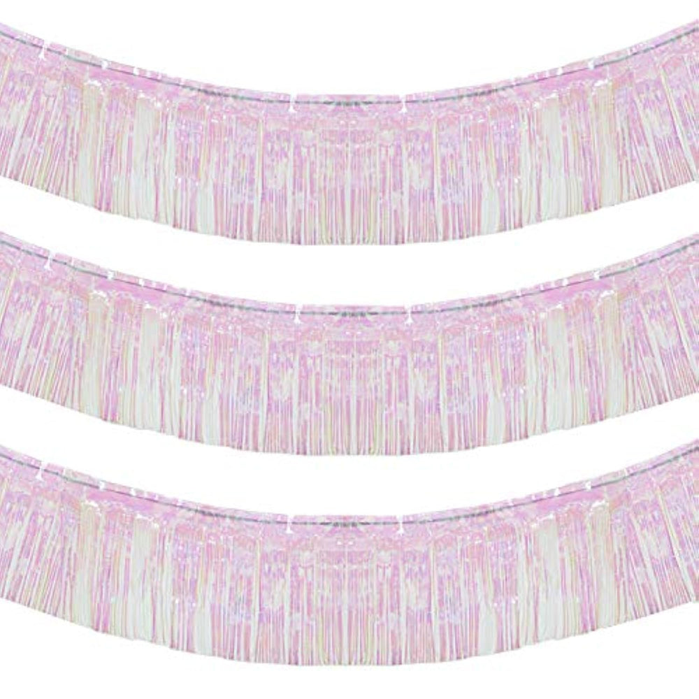 | Perfect For Decorating A Trailer For A Parade Floats, As Table Skirt, Decor A Backdrop Or Anywhere You Want To Add Shimmer. | | Easy To Install: Each Metallic Fringe Garland Comes With Self-Adhesive Tape On The Top For Easy Attachment To Your Wall Or Table. | | Premium Quality: Made Of High Quality Metallic Foil, Lightweight And Shiny. A Line Is Sewn On The Top Of The Garland To Make It More Durable. | | Suitable Occasions: Suitable For Patriotic Display, Homecoming Float, Christmas Float, Labor Day, 4 Of July, Independence Day, Photography And Also Suit For Scare Birds Away From Garden Etc. | | Package Includes: Come With 3 Pack Iridescent White Garland. Each One Is 15" Drop X 10 Feet Long And Can Easily Be Cut Into Any Size. | |