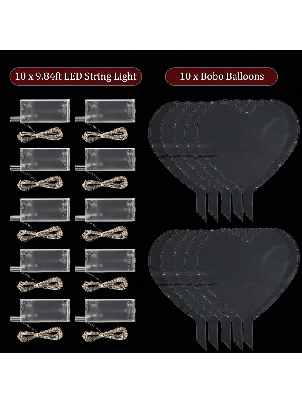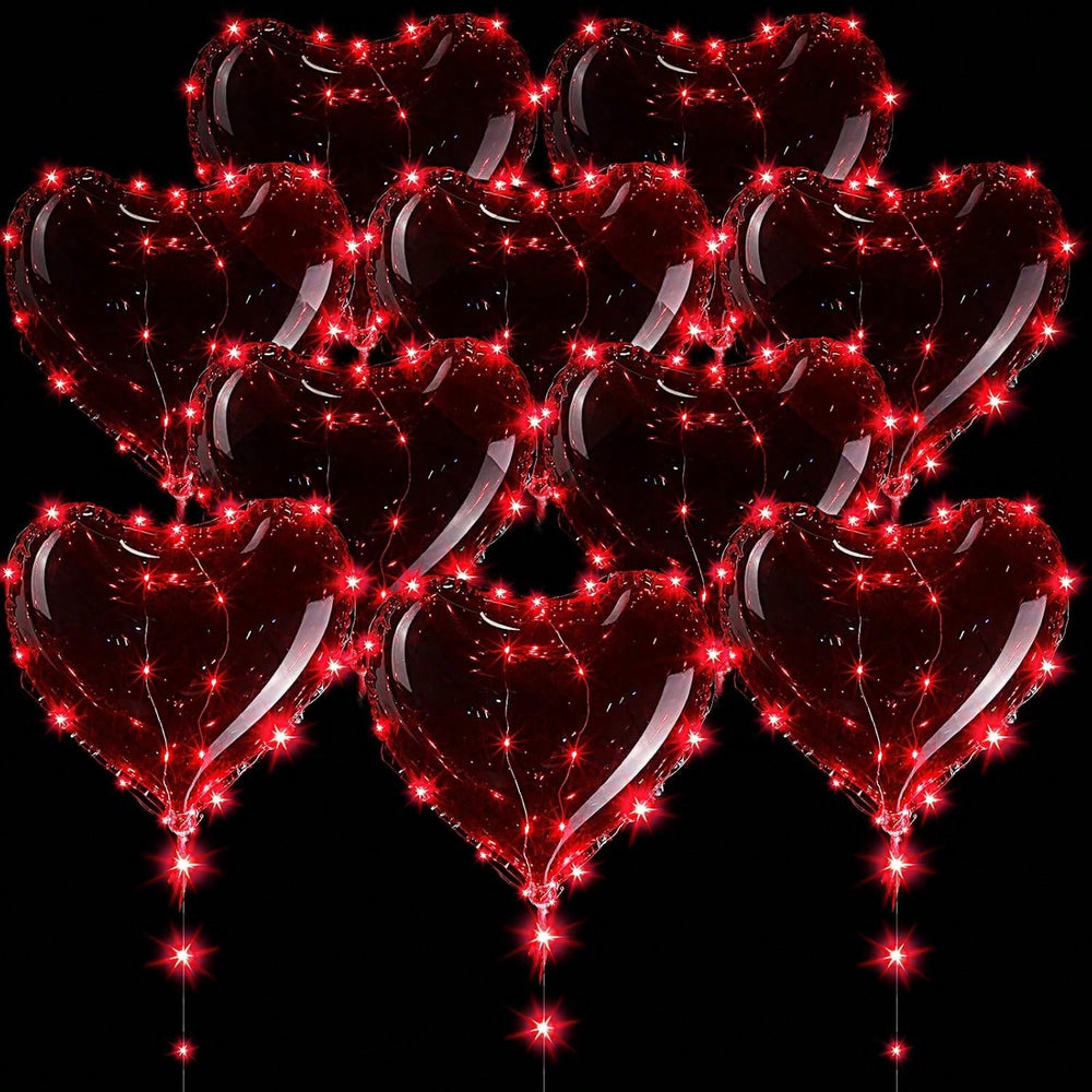 Lighted Heart Shaped Balloon Set: you will receive 10 pieces of clear heart shaped balloons measures 40 cm/ 15.8 inches to 45 cm/ 17.7 inches, and 10 pieces of 9.84 ft red LED light strings, and the heart shaped design adds more fun and looks more eye catching, they can light up your festival or party night