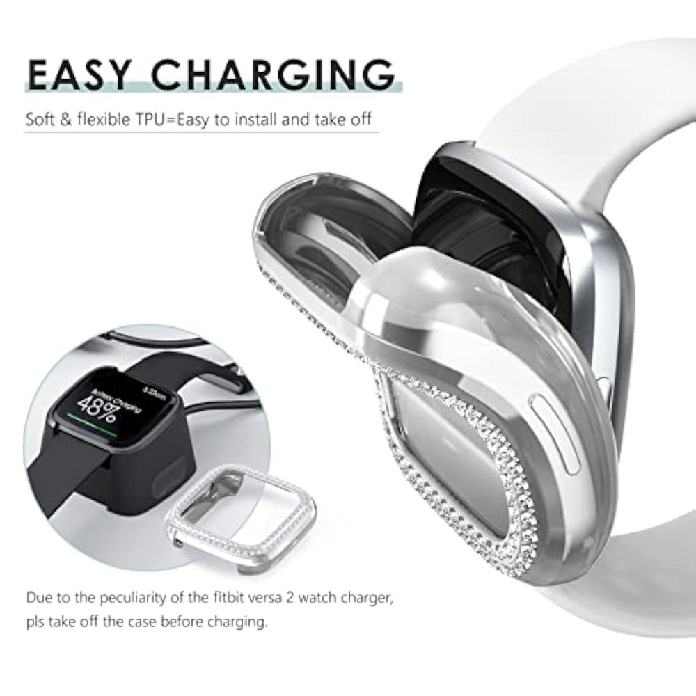 | ?Responsive Screen Protector Case?: Compatible With Fitbit Versa 2/Versa 2 Special Edition, Not For Fitbit Versa 1/Versa 3); 10 Packs Fitbit Versa 2 Screen Protector Case Soft Tpu Bumper Cover With Sparkling Crystals. Eye-Catching And Protective Sparkling Fitbit Versa 2 Case Adorned With Over 100 Sparkling Cubic Zirconia Crystals, It Allows Your Watch To Double As A Handy Gadget And Glamorous Jewelry. | | ?Full Protection?: Soft Tpu Material With Flexible And Shock-Absorbent Layer, This Full Coverage Protective Case Protects Your Fitbit Versa 2 Smartwatch Screen And Four Side From Drop And Scratches, Shatter, Collision Or Other Potential Damage. | | ?Perfect Fit Easy To Install??Made Of All-Around Soft Flexible Tpu, Waterproof, Easy To Install And Take Off, You Don’T Need To Remove The Versa Band When Installing The Case. But Due To The Peculiarity Of The Watch Charger, Pls Take Off The Case Before Charging. | | ?Smooth Touch Ultra Hd?: Screen Protector Case For Fitbit Versa 2 Allows 100% Touchscreen Accuracy With 99% High Transparency Features, Keep Original Color And Brightness Of The Watch Screen. Sensitive Tpu Material Ensures You Have A Excellent Operating Experience, Which Doesn'T Interfere With The Screen Usability At All. | | ?18 Months Unconditionally Refund Or Reship With Any Quality Problems?. Casual And Convenient Enough For Daily Use, But Still Stands Out; Makes A Perfect Gift For Someone Who Loves To Glam Up Their Everyday Accessories Or For Yourself. For Any Reason, If You Are Not Satisfied For The Case, Please Don'T Hesitate To
