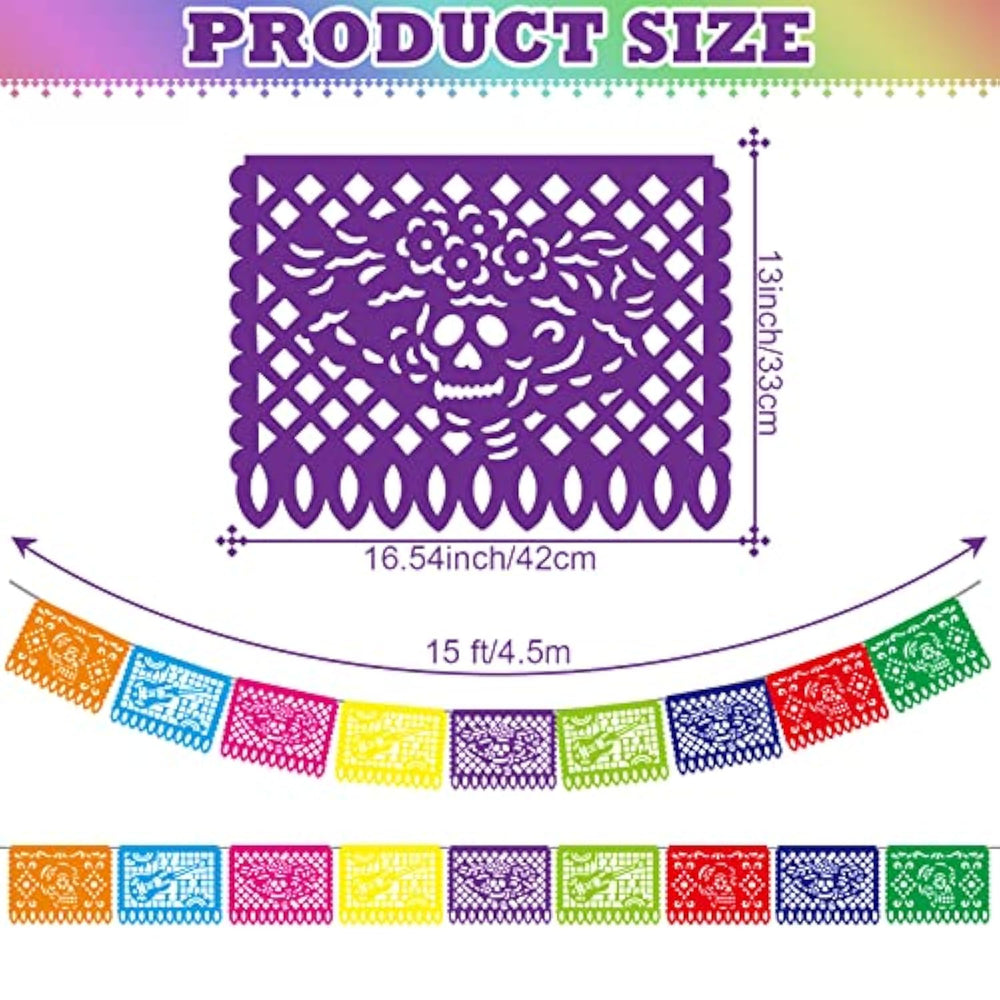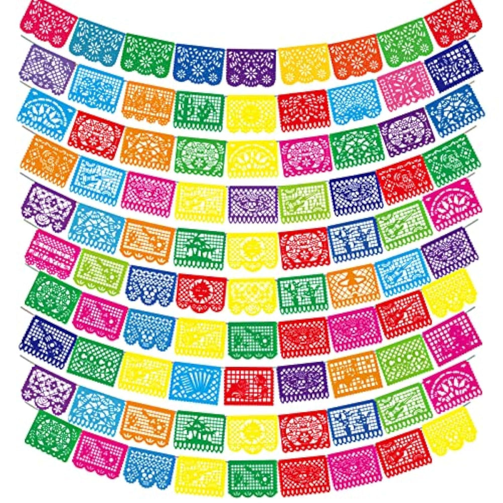 | Plastic | | Contains 10 Packs Of Reusable Plastic Papel Picado Banners In 10 Vibrant Styles For Mexican Themed Parties | | Ideal For Decorating Birthdays, Baptisms, Weddings, Retirements, Cinco De Mayo, Day Of The Dead, And More Festive Occasions | | Preassembled Foldable Banners Are Easy To Hang On Windows, Ceilings, Walls, Fireplaces, And More To Create Festive Atmosphere | | Durable Lightweight Plastic Material In Bright, Fade-Resistant Colors Serves You For A Long Time | | Total Length Of 170 Feet Provides Ample Decor For Meaningful Backdrops And Photo Props | |
