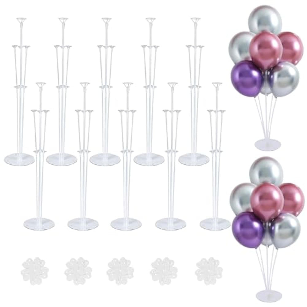 | The Value Package Includes: 10 Sets Balloon Stand Kit And 5 Flower Clips. Each Table Balloon Centerpiece Stand Kit Includes 11 Tubes,4 Connection Joints, 7 Cups And 1 Base (Balloons Are Not Included). | | Premium Material: Balloon Stand Are Made Of High Quality Material. The Balloon Table Stand Kit Are Very Sturdy And Can Be Reused. | | Wide Applications: This Balloon Stand Can Be Perfectly Matched With Balloons Of Any Color And Shape. Perfect For Birthday Party,Graduation Party, Baby Shower,Anniversary,Wedding,Christmas Party And Any Other Table Centerpieces Decoration. | | Use Your Creativity:Just Use Different Color Or Pattern Balloon To Get Different Balloon Stands To Decorate Your Every Important Events.You Could Diy As Yours Will! | | Easy To Assemble: It Only Takes A Few Minutes To Assemble A Beautiful Balloon Decoration. You Just Need To Connect The Balloon Sticks, Insert Them Into The Bases Separately And It Is Easy To Tie The Balloon To The Cup. Using Tape To Fix The Base Can Strengthen The Stability Of The Balloon Stand, Especially Outdoors. | |