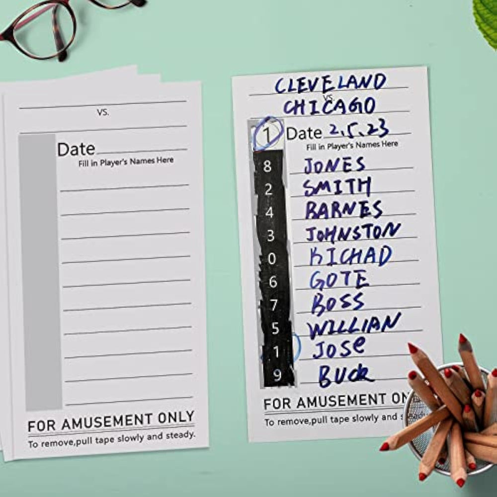 | Package Includes: 100 No-Repeat Football Bowl Sports Strip Cards To A Pack Comes Off Nicely To Reveal The Winner; These 10 Line Sports Strips Cards Are Enough To Get Everyone Engaged; Have A Blast With Your Friends And Add Excitement To The Game | | Easy To Use: First, Fill In Out The Football Strip Cards Which Includes Team'S Name, Date, Player Name; Then Each Payer'S Number Is Displayed, Strips Are Scratched Once The Card Is Complete; Finally, Score Is Scored, The Winner Is Decided At The End Of Each Quarter; The Tape Covers All Rows From 0 To 9 Are Randomly Placed , And Includes A Bonus Number To Increase Another Chance Of Winning | | High-Quality Material: These Handmade, Quality Football Strip Cards Are Clean And Easy To Use; No Messy Scratch Off Or Extra Tools Needed To Play; Black Tape Makes Strip Cards To Ensure No Cheating Or Peeking Prior To Start | | Simple Use: No Coins Needed, No Tools Necessary, Larger Than Other Baseball Strip Cards; They Are A Glossy Card Which Is Lightly Dusted With A Black Strip That You Peel Off To Reveal The Winners | | Wide Application: You Can Use These Football Sports Strip Cards For All Sports. Professional Games, Championships, Baseball, Basketball, Boxing, Super Football Bowl, World Series, World Cup, Soccer And So On | |