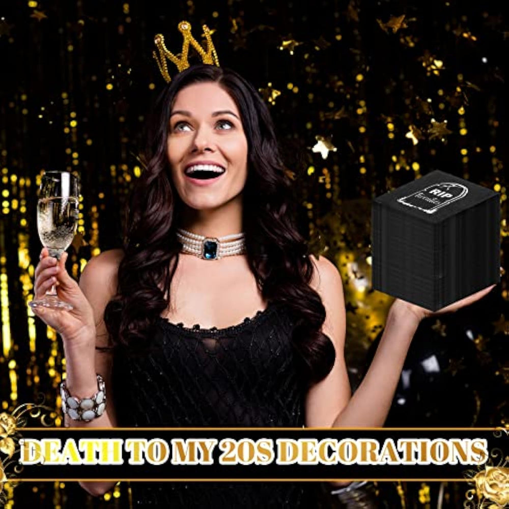 | Package Including: You Will Receive 100 Pcs Of 30Th Birthday Napkins, Enough Quantity To Meet Your Family And Party Needs; They Are Made Of 2 Plies Paper, Which Will Not Tear Easily; They Are Suitable For Rip To My Twenties Birthday Party Decorations, Death To My 20S Birthday Party Decorations, Cheers To 30 Years, Making The Party Impressive | | Suitable Size: The Black Cocktail Napkins Measure Approx. 12.5 X 12.5 Cm/ 5 X 5 Inches Folded, And 25 X 25 Cm/ 10 X 10 Inches Unfolded, Regular And Convenient Size, Suitable For Carrying; They Can Be Applied By Family Or Friend At Birthday Party Decorations, For Upcoming 30Th Birthday Party Dinner With Your Family And Friend, Your Preparation Is Sure To Make Guests Or Friend Think You Are Considerate | | Meaningful Design: The Exquisite Pattern With The Theme Of Rip Twenties Makes The Funny 30Th Birthday Decorations More Mysterious; The Design Is Appropriate To The Birthday Theme, 30Th Birthday Party Decorations, And Will Elevate Your 30Th Birthday Party And Keep Your Table Clean | | Birthday Decoration: You Can Add These Party Decorations To Your Party Table To Decorate Dinner For Your Upcoming 30Th Birthday Party, And Share The Joy With Your Family And Friend, Which Will Be Meaningful And Impressive | | Wide Applications: The Birthday Table Decorations Can Not Only Be Applied In Various Forms Of 30Th Birthday Parties, But Also Can Be Applied As Birthday Gifts For Relatives And Friend; And They Can Also Be A Decoration In Festivals Such As Halloween; The Black Color Is Classic And Cool | |