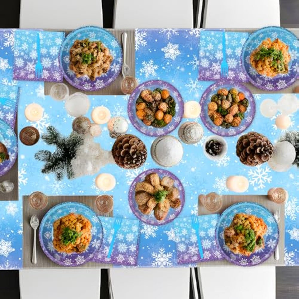| ?Frozen Tableware Set - 100 Pcs?- You Will Receive 100 Pieces Of Frozen Dinnerware, Including 25 Packs Of Dinner Plates (9"), 25 Packs Of Dessert Plates (7"), 25 Packs Of Blue Forks And 25 Pack Of Thicker Paper Napkins. These Thoughtfully Crafted Snowflake Plates And Napkins Are Ideally Suited For Winter Family Reunion Of Up To 25 Guests, Accommodating Both Indoor And Outdoor Celebrations With Ease. Choose This Snowflakes Party Tableware And Tablecloths, Let Your Frozen Theme Party Be Full Of Colors And Fun | | ?Snowflake Winter Design? - Each Plate, Napkin, And Fork In This Set Features A Beautiful Blue And White Snowflake Pattern, Adding A Magical Winter Wonderland Touch To Your Frozen-Themed Birthday Party. You Can Take Out These Frozen Paper Plates, Napkins, Forks, And Use Them With Kids, Girls, Boys, Friends, And Family At Your Family Gathering Or Winter Party. Enjoy The Good Times, And These Winter Party Decorations Will Make The Party Look Even More Lively And Fun | | ?Perfect Size?- These Heavy Duty Snowflake Plates Come In Two Different Sizes. The Large Dinner Plates Measure 9 Inches In Diameter, While The Small Dessert Plates Measure 7 Inches In Diameter. The 3-Ply Luncheon Napkin Unfolds To Reveal A Spacious 13 X 13 Inch Size, Ideal For Covering A Tabletop, And When Folded, It Becomes 6.5 X 6.5 Inches For Easy Carrying And Storage. It Also Comes With 25 Matching Plastic Forks Measuring 6.3 Inches, Providing Convenience For You To Enjoy The Food | | ?High Quality Material?- Our Winter Disposable Plates, Napkins And Forks Set, Designed For Frozen Table Settings, Can Be Disposed Of After Use, Eliminating The Hassle Of Cleaning. This Makes Post-Party Cleaning An Easy And Quick Task, Allowing You More Time To Enjoy The Festivities. These Frozen Party Decorations Are Made From Durable, Food-Grade Material That Features Smooth Edges, Sturdiness, Is Odourless, Resists Breakage, And Has Long-Lasting Colors That Are Not Easy To Fade | | ?Wide Range Of Applications?- Our Snowflake Plates And Napkins Party Supplies Are Suitable For Winter Wonderland Parties, Christmas Theme Parties, Xmas, Kids' Snow Flakes Birthday Parties, Baby Shower, Picnics, And Indoor Or Outdoor Activities, Etc. In Addition, We Offer 24-Hour Professional
