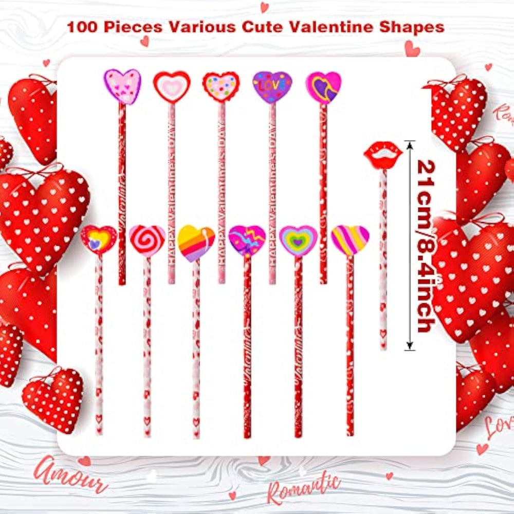 | Package Included?You Will Get 100 Pieces Valentine'S Day Pencils Including 12 Different Styles And Patterns With Many Kinds Of Big Eraser In Valentine'S Elements ,Enough Quantity And Styles For Your Choice, Meet Your Daily Use And Share With Your Friends | | Valentine Styles: The Valentine'S Day Pencils Have 12 Styles, Such As Rose, Cupid'S Arrow And So On, Our Pencil Comes With A Soft, Smudge-Free, Latex-Free, Removable Rubber Christmas Elements Eraser At The Top Of Each Pencil, Just Like Heart?Antithetical Ring And So On?Which Will Give You More Choose, Add More Fun To You In The Festival And Daily Life | | Proper Size: The Pencil Is Approx. 7.5 Inches Unsharpened , Easy To Carry And Store?Proper Size For You To Write Or Draw?It Is Perfect Gift For Kids Friends, Personal Collection And School Children Prize To Bring Great Fun For Children And Improve The Enthusiasm Of Children Learning | | Wide Application?You Can Use Them For Gift Bags For A Classroom, For Valentine'S Day Gift, Valentine'S Prize,Also Can Be Given To Your Students As A Class Reward; The Classic Valentine'S Colors And Elements Will Add Valentine'S Atmosphere | | Perfect Gift: These Pencils Feature Various Patterns And Vibrant Colors, Like Love, Heart ,Rose And Etc,Interesting Pattern Design, Lifelike, Lovely And Eye-Catching, Which Can Add More Atmosphere To Valentine'S Party, Very Easy To Attract People'S Attention And Welcome,Great Gift For Boys And Girls | |