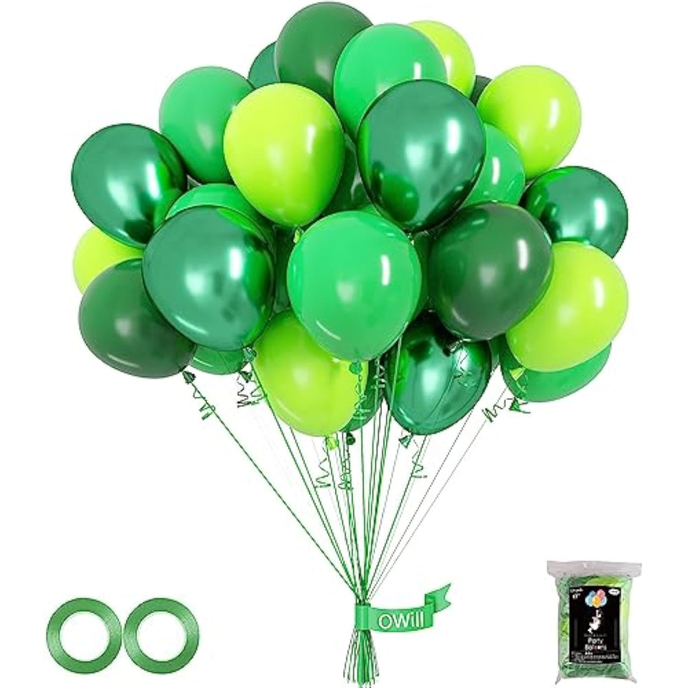 This balloon kit includes 100pcs 12-inch metallic and latex green balloons with two 32ft green ribbons. Made from high-quality natural latex, they are durable, safe, and can be filled with air or helium without leaking. green balloons are crafted using plant-based raw materials and polymer synthesis technology, reducing allergy risks. Perfect for creating stunning green balloon arches, these balloons are ideal for birthday parties, weddings, gender reveal celebrations, and Valentine’s decorations.