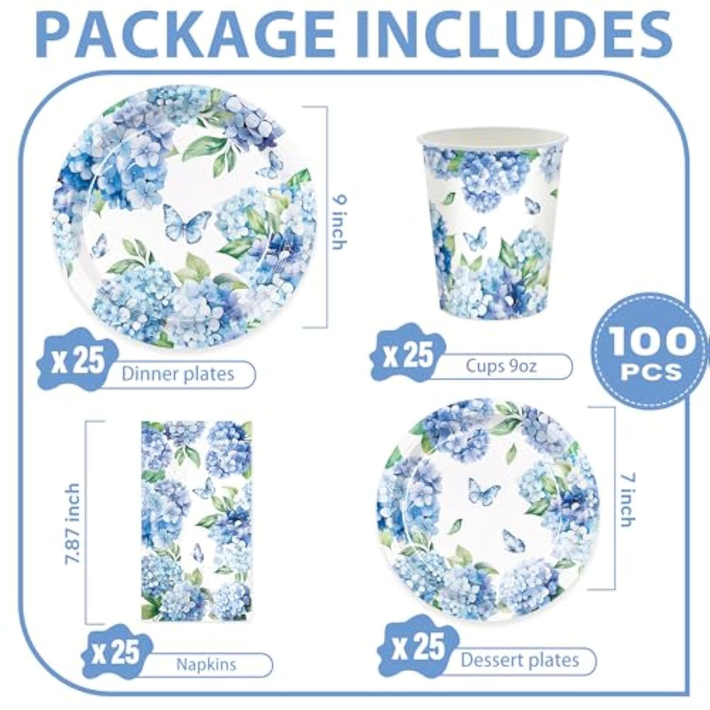 | Hydrangea Party Supplies: Our Hydrangea Floral Tableware Set Include 25Pcs 9" Dinner Plates, 25Pcs 7" Dessert Plates, 25Pcs 7.87'' Napkins, 25Pcs Paper Cups. Serves Up To 25 Guests, Allowing Each Guest To Enjoy A Complete Hydrangea Dining Experience! | | Hydrangea Design: Our Hydrangea Paper Napkins Are Feature Blue Watercolor Hydrangea Butterfly Patterns On The Background That Are Both Exquisite And Elegant To Create A Beautiful Flower Scen, Which Will Attract The Attention Of Your Friends And Guests Which Will Leave A Unforgettable Memory For You. | | High Quality Material: Thehy Hydrangea Plates Napkins Made Of High-Quality Paper Material, Which Are Environmentally Friendly And Degradable. The Paper Plates Are Reliable, Suitable For Carrying All Kinds Of Food, And The Paper Napkins Are Soft And Absorbent, Making Guests More Comfortable To Dine. | | Save Your Time: Disposable Hydrangea Paper Napkins Easily Wipe Away Water Stains And Dirt, Just Throw Them Away When You'Re Done Using Them, Which Can Save Time And Spend More Time Enjoying The Hydrangea Party With Family And Friends. | | Wide Application: Our Hydrangea Party Supplies Are Suitable For Hydrangea Themed Party, Anniversaries Wedding Bridal Shower, Baby Shower, Birthday Party And So On, Which To Choose Our Hydrangea Napkins Creating A Warm And Cozy Dining Atmosphere For You, Making Your Guests Feel Cared For And Entertained, And Bringing A Pleasant Mood. | |