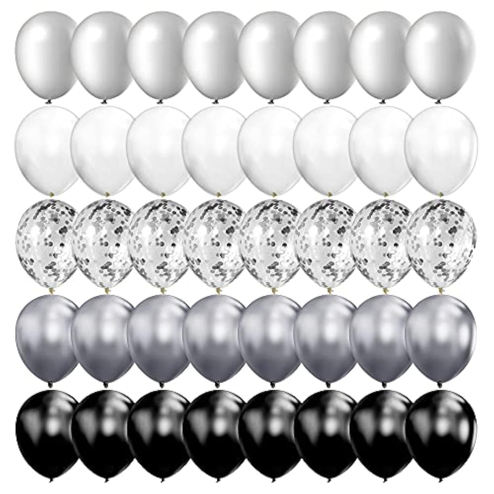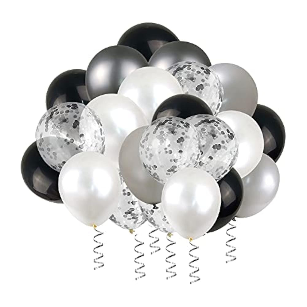 This set includes 100 balloons, each approximately 12 inches after inflation and weighing 2.8 grams. It comes with 20 silver confetti balloons, 20 silver chrome metallic balloons, 20 silver latex balloons, 20 black latex balloons, 20 white latex balloons, and a 33-foot silver ribbon roll. Made from high-quality latex, these balloons are perfect for a variety of celebrations, including weddings, proposals, bachelorette parties, engagements, retirements, graduations, Valentine's Day, birthdays, and holiday decorations, adding a stylish and elegant touch to any event.