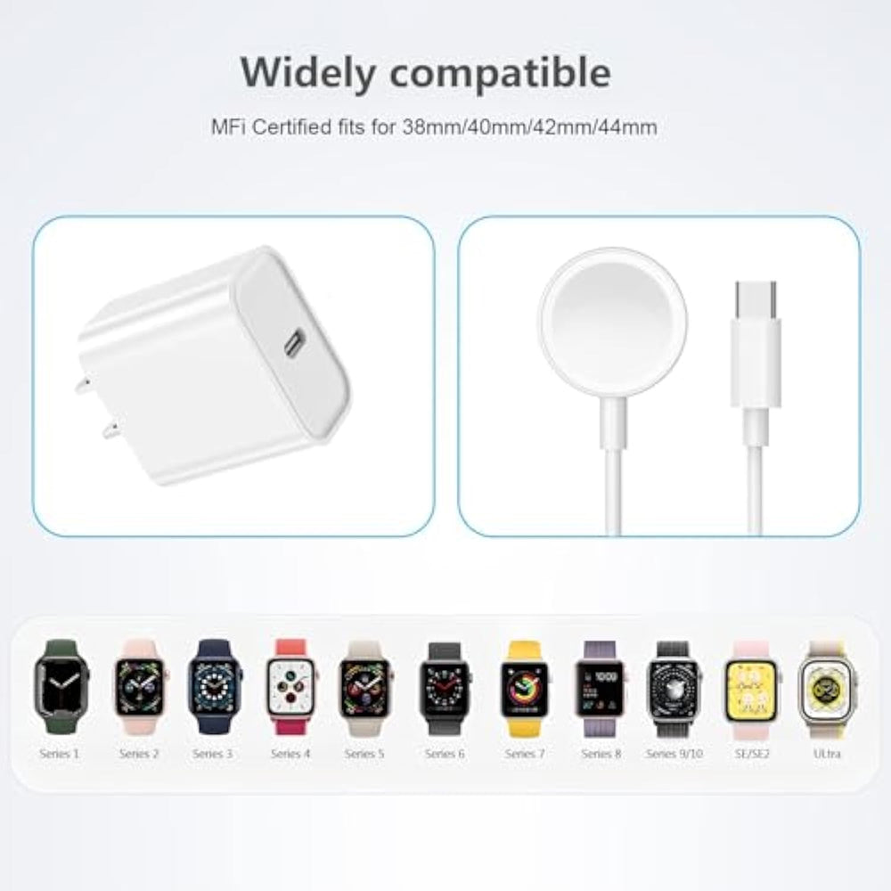 | 10Ft/3M Strong Magnetic Adsorption Cable?Compatible With Apple Watch Charger With Strong Adsorption, You Can Freely Adjust The Angle Of The Watch While Charging.To Avoid Overheating,We Recommend Charging Your Watch Without A Case.Watch Charger Cable Pass Bend Testing And Plugging Testing.Can Providing Superirability And Secure And Stable Charging | | Compatible With Apple Watch Series:The For Apple Fast Watch Charger Cable Is Compatible With Apple Watch Series 10, Series 9, Series 8, Series7, Series Se, Series 6, Series 5, Series 4, Series 3, Series 2, Series 1, And Compatible With Apple Watch Ultra, For Apple Watch Sports, For Apple Watch Herm~S And For Apple Watch Edition. It Can Support All Watch Sizes, Including All 38Mm, 40Mm, 41Mm, 42Mm, 44Mm And 45Mm Versions | | 20W Usb C Fast Charger Block: Our For Apple Watch Charger Comes With 20W Usb C Charger Adapter, Up To 3X Faster Than The 5W Original Charger Speed. To Get Better Experience, For Apple Watch Charger Series 10 Is Fully Charged In About 2.5 Hours | | Safe Watch Charger: Our Iwatch Charger With The Original Mfi Chip And Integrated Magnetic Technology,Ensures Fast Charging Speed For Apple Devices.This For Apple Watch Charger Cable Is Made Of High Quality Abs+Pc And Pure Copper Wire, The Cable Has Been Tested For 10000+ Times Of Bending To Avoid Shortened Lifespan Due To Aging And Usage | | What You Will Get : Our Package Includes 2X 20W For Apple Watch Charger Usb C/Type C Fast Charger Block And 2X 10Ft For Apple Watch Charger Cable. If You Have Any Question About The For Apple Watch Charger, Please Feel Free To