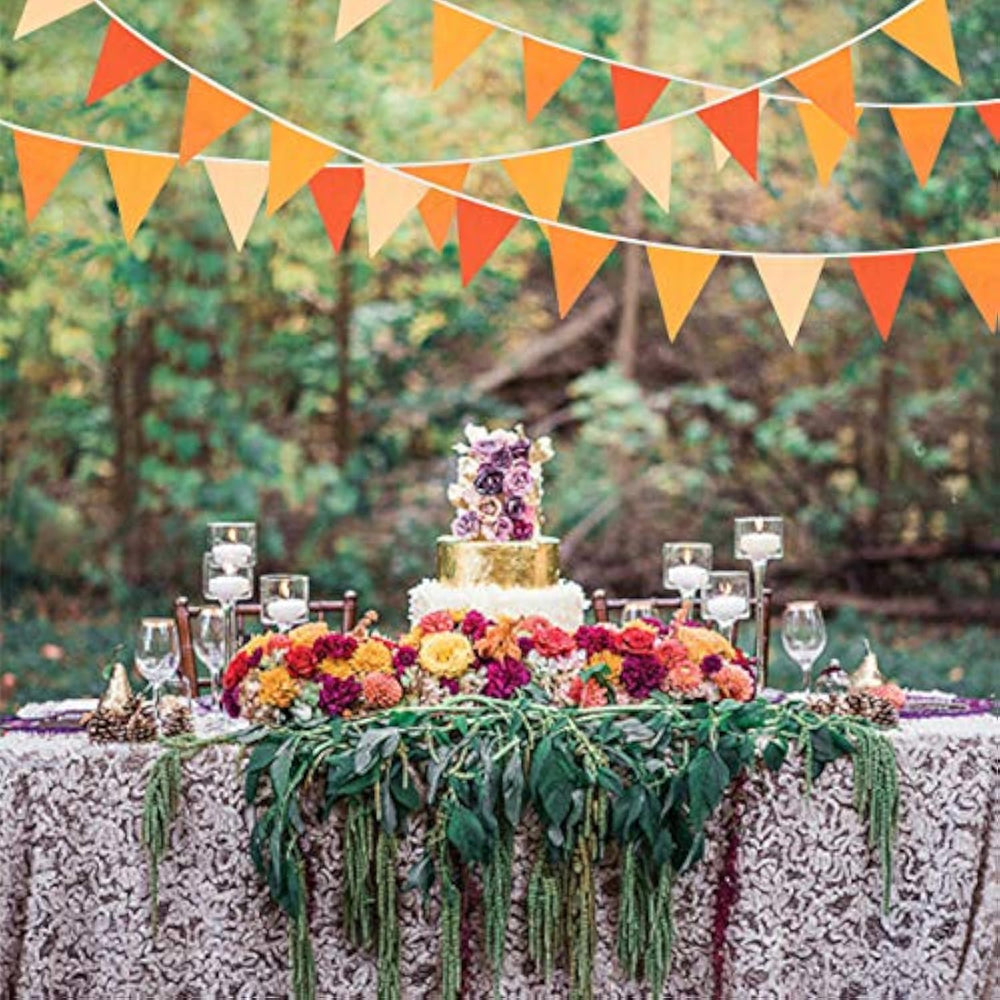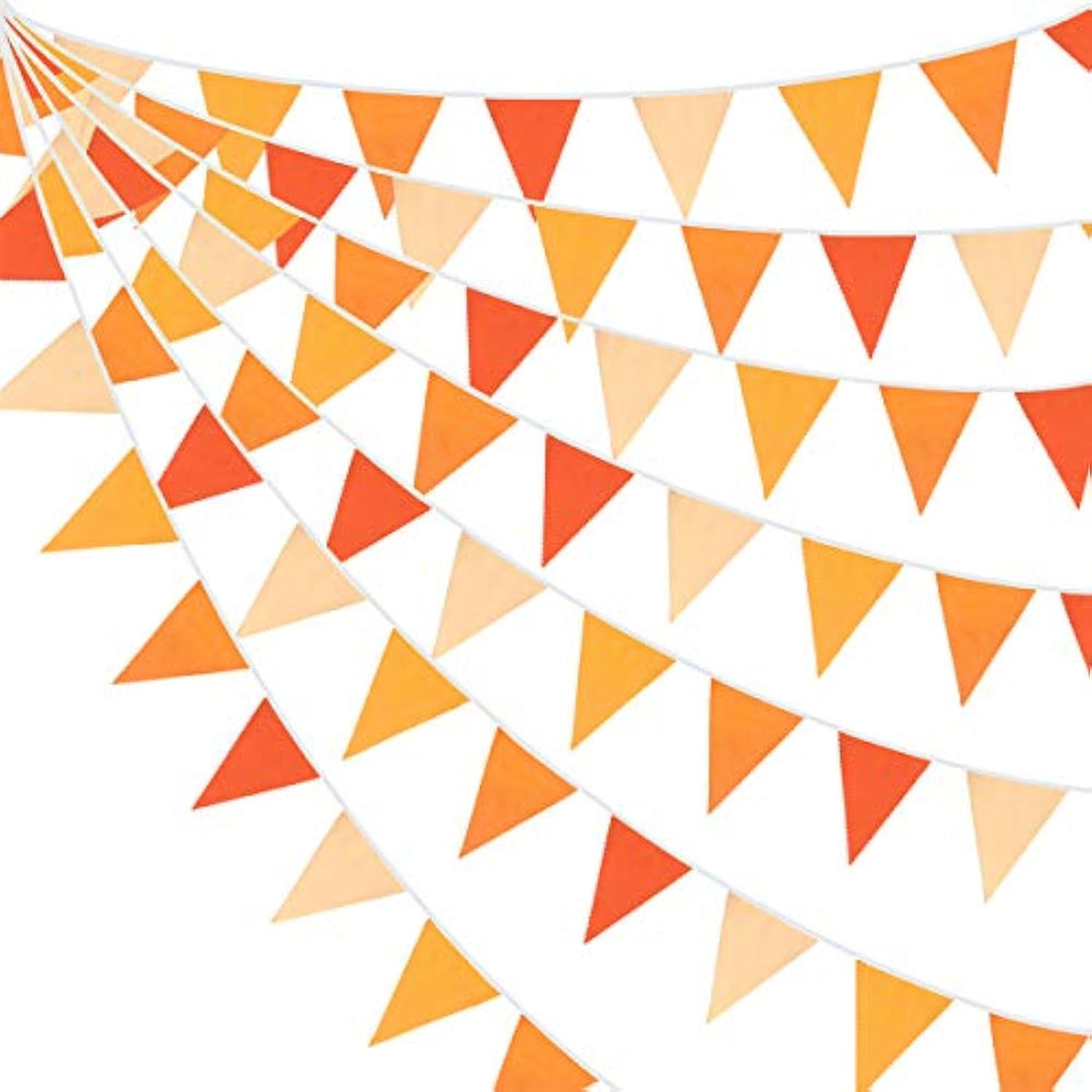 | Package Including:1 Pack Fabric Bunting Banner Garland In Orange, With 36Pcs Flags In 10M/32.8Feet. Flag Size: 5.5In Width X 7In Height | | Material: Longlife-Hand-Made Pennant Banner Made Of Strong Weatherproof Cotton. Washable And Reusable For Many Times, Soft And Comfortable Touch | | Easy Using: The Banners Are Very Easy To Hang And Decorate Both Inside And Outside, Like Home, Wall, Bedroom, Dining Room, Ceiling, Fireplace, Window, Garden, Branches, Fences, Restaurants, Bars | | Orange Party Choice: These Orange Triangle Flags Are Good Ideal For Any Kind Of Celebration, Party, Festival, Events Or Other Occasion. It Can Be Used By Both Kids And Adults. Like Thanksgiving Day, Happy Fall, Autumn Decoration, Little Cutie Party, Little Pumpkin Party, Groovy Party, Sunshine Party, Wedding, Birthday, Baby Shower, Nursery Christening, Family Gatherings, Outdoor Activities, Tea Party Etc. | |