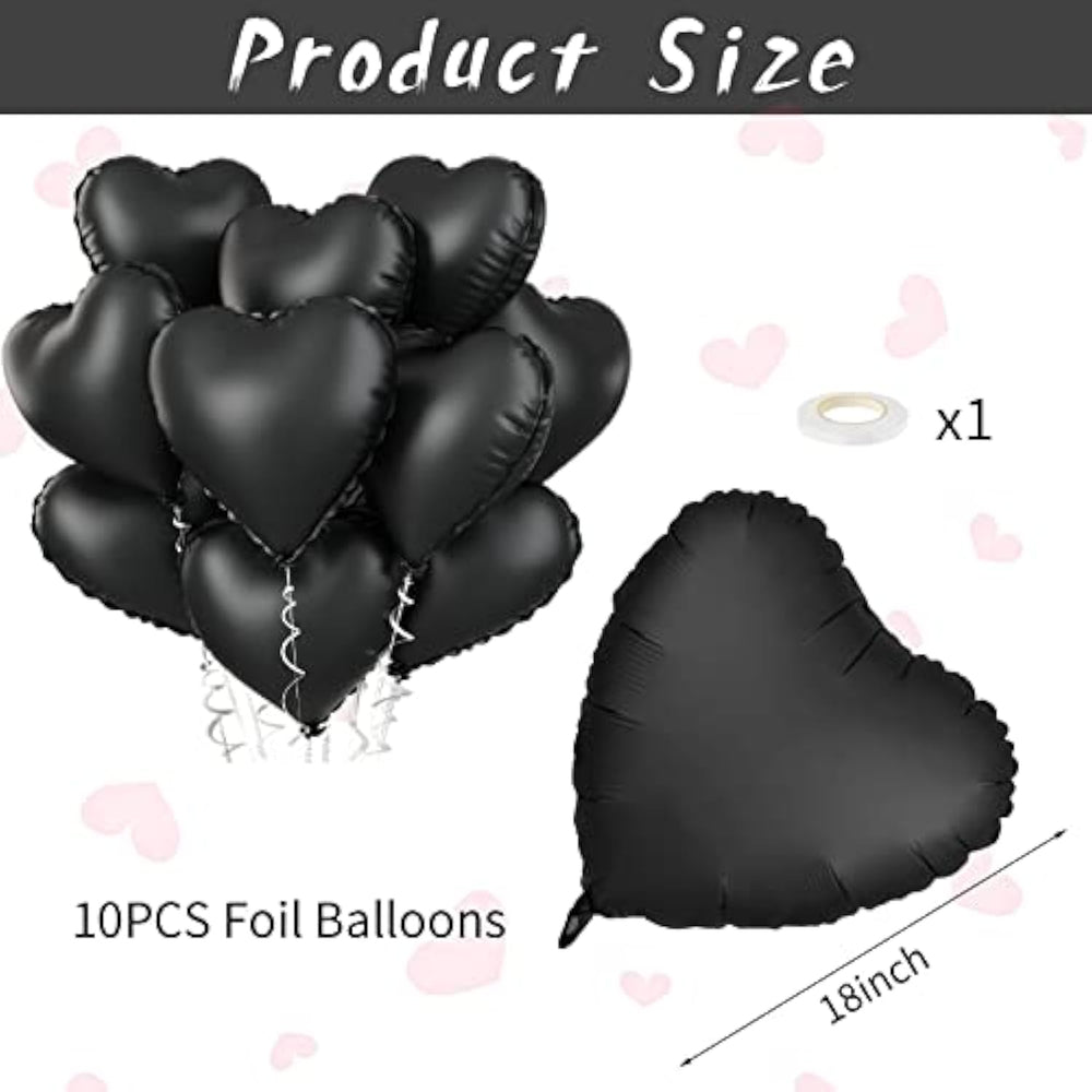 This set of 10 black foil heart balloons is perfect for adding a stylish and memorable touch to any celebration. Each balloon measures 18 inches and comes with a 10-meter ribbon, allowing you to create eye-catching displays for parties, holidays, or special events. Made from high-quality, durable foil with a glossy matte finish, these balloons are safe, long-lasting, and maintain their shape beautifully. They can be inflated with air or helium (recommended 85–90% to avoid bursting) and feature self-sealing valves, making them reusable for future celebrations. Versatile and elegant, these black heart balloons are ideal for birthdays, baby showers, weddings, anniversaries, Valentine's Day, New Year’s Eve, and more, perfect for bouquets, table decorations, photo backdrops, or creative party arrangements.