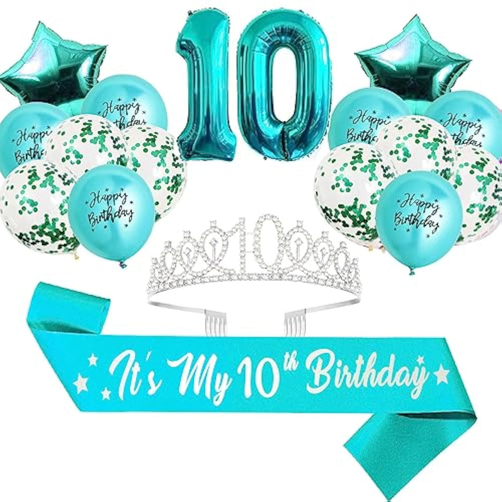 | Birthday Decorations For Girls: The Box Includes: 12*12 Inch Latex Balloons; 2*18 Inch Teal Star Aluminum Foil Balloon; 1*32 Inch Teal Number "10" Aluminum Foil Balloon; 1 Silver Birthday Rhinestone Crown; 1 Teal Birthday Sash With Silver Letter It'S My 10Th Birthday | | Teal Theme 10Th Birthday Party: Perfect For Happy 10Th Birthday Party According To Your Needs. Teal Theme 10Th Birthday Decorations For Girls, Makes A Special And Memorable Party For Your Girl | | Exquisite Tiara For Girl: Make Your Girl Special And Dazzling On This Special Day With The Rhinestone Crown And Teal Birthday Sash. Creating Romantic Atmosphere And Perfect Props For Taking Pictures | | Ideal Photo Booth Backdrop: The 10Th Birthday Party Decorations Use Teal As The Theme Color, Use Them To Decorate Your Daughter’S Party As A Photo Booth Backdrop! Creating A Wonderful Time For Your Daughter | | Enjoy Your Party: All This Party Supplies Create A Warm And Happy Atmosphere For You And Narrow The Distance Between You And Your Family And Friends.Any Question Will Be Solved Within 24 Hours | |