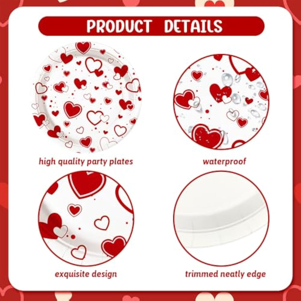 | Valentines Day Party Supplies: You Will Receive 16Pcs 9Inch Plates, 16Pcs 7Inch Plates, 16Pcs Paper Napkins, 16Pcs Paper Cups And 16Pcs Cutlery, 16Pcs Paper Straws, Perfect For Valentine'S Day Galentine'S Day Party Supplies | | High Quality: The Red Heart Valentines Day Tableware Set Is Bpa-Free. Paper Plates, Cups, Napkins And Straws Are Composed Of Non-Toxic, Recyclable, Heavy Duty Paper That Won'T Tear, Or Break Easily. You Can Use These Disposable Plates Set Without Hesitation | | Heart Design: Valentines Day Galentines Day Party Decorations Set Is Designed With Elements Such As Red Heart. It Makes The Galentines Day Valentine'S Day Party Full Of Valentines Day Galentines Day Sweet Party Atmosphere | | Easy To Clean: These Valentines Day Party Tableware As Disposable Items Free Of Washing, You Can Throw Them Away When You Clean Up After An Event Or Party, Which Is Very Convenient And You Can Spend More Time With Friends And Family, Saving You Time | | Widely Applications: These Valentine'S Day Plates And Napkins Are Perfect For Any Indoor And Outdoor Party, Valentine'S Day Parties, Galentine'S Day Parties, Birthdays And Baby Showers, Both To Hold Food And To Decorate Your Party, Adds A Touch Of Seasonal Fun And Makes Your Event Memorable For All Guests | |