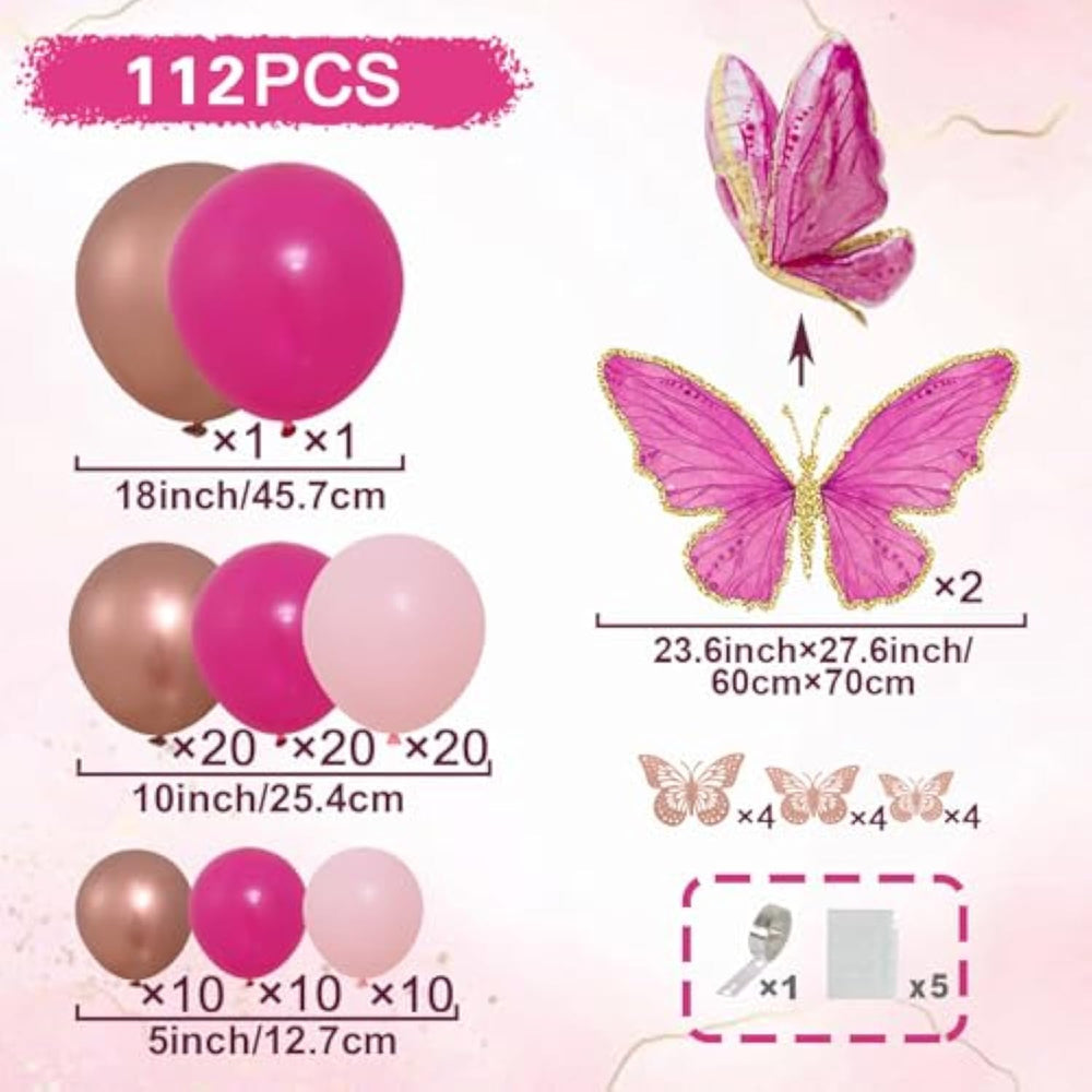The Pink Butterfly Balloon Arch Kit includes 92 balloons in three colors—pink, rose gold, and macaron pink—in three sizes, along with two pink and gold butterfly foil balloons, 12 butterfly decorations, balloon tape, and glue dots. Made from high-quality natural latex, these balloons are durable, non-toxic, and long-lasting, ensuring they stay inflated throughout your event. Easy to assemble with included instructions, this kit saves time so you can focus on enjoying the celebration. Perfect for pink butterfly-themed birthdays, baby showers, bridal showers, weddings, and other special occasions, these elegant decorations will create a stunning party atmosphere.