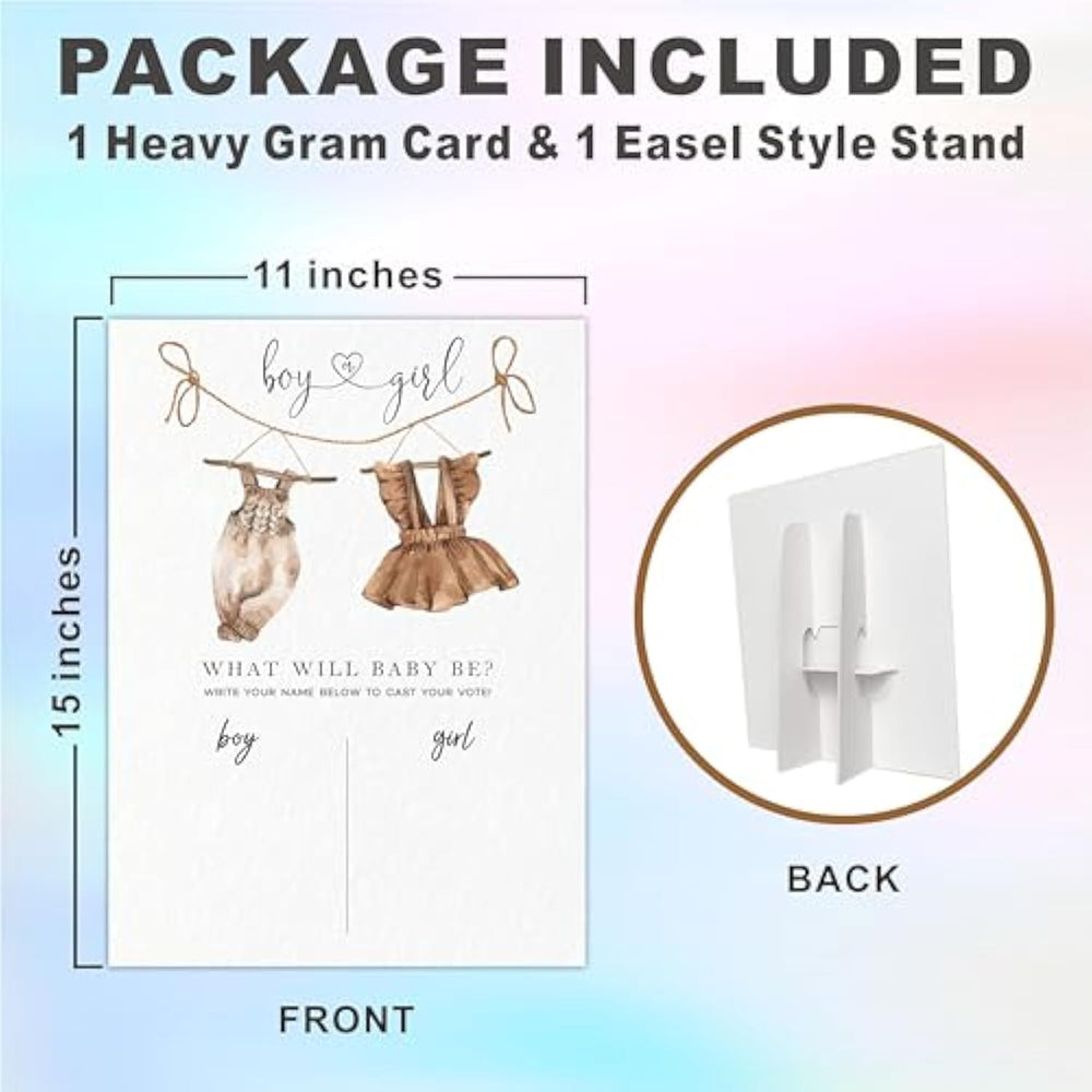 | Size: The Gender Reveal Voting Signs Are Measures 11 X 15 Inches. | | Package Included: 1 Heavy Gram Card Stock 1 Matching Easel Style Stand. | | Material: The Signs Are Made Of Heavy Grams Card Stock, Thick And Hard Enough, Printing Technology Provides Fine Colors And Well-Presented Details. | | Applications: Interactive Baby Shower Activity, Decorate Your Space, Enjoy The Joy Of Your Party Time. | |