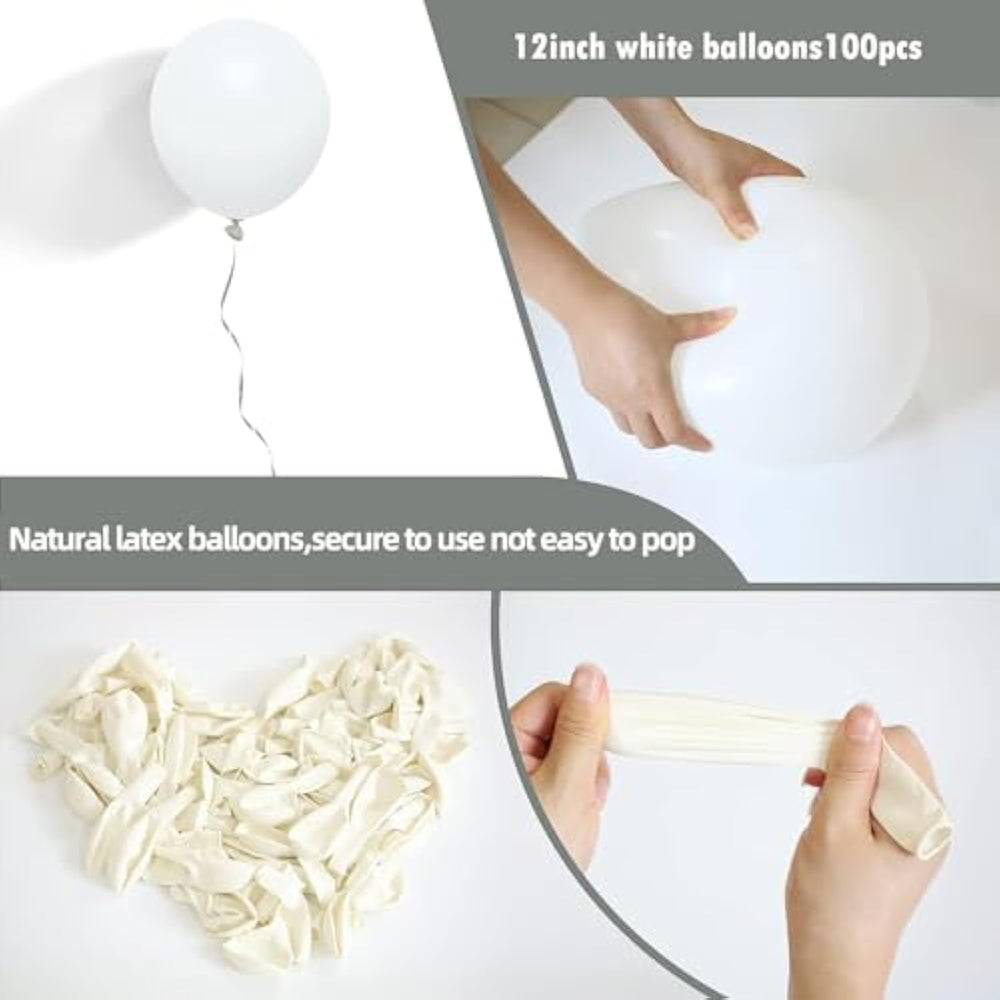 What You Get: 100Pcs 12 Inch White Balloons, 2 Roll Of White Balloon Ribbons | Great Quality: The White Party Decorations Are Made Of Great Latex, Unlikely To Burst. The White Latex Balloons Can Be Filled With Air Or Helium, And We Recommend Using A Balloon Pump For Quick Inflation, But Don'T Blow The Balloon Too Full To Maintain A Great Shape As Long As Possible | Suitable For Many Occasions: The White Party Balloons Are Great For Happy Birthday Balloon, Baby Shower, Valentine, Halloween, Christmas, Wedding, Gender Reveal Party. You Can Make White Balloon Garlands Arches Kit, And Match Other Colorful Balloons According To Your Favorite Party Theme | Match Colors And Sizes: To Match Your Party Theme, You Can Mix 12 Inch White Balloons With Other Colors And Sizes To Create A White Balloons Garland Or Arch | Warm Reminder: If You'Re Not Happy With The Matte Latex White Balloons For Any Reason,We Will Work Hard To Solve The Problem Until The Problem Is Resolved. We'Re Committed To Providing You With Great Service And Helping You Create The Great Party Atmosphere |