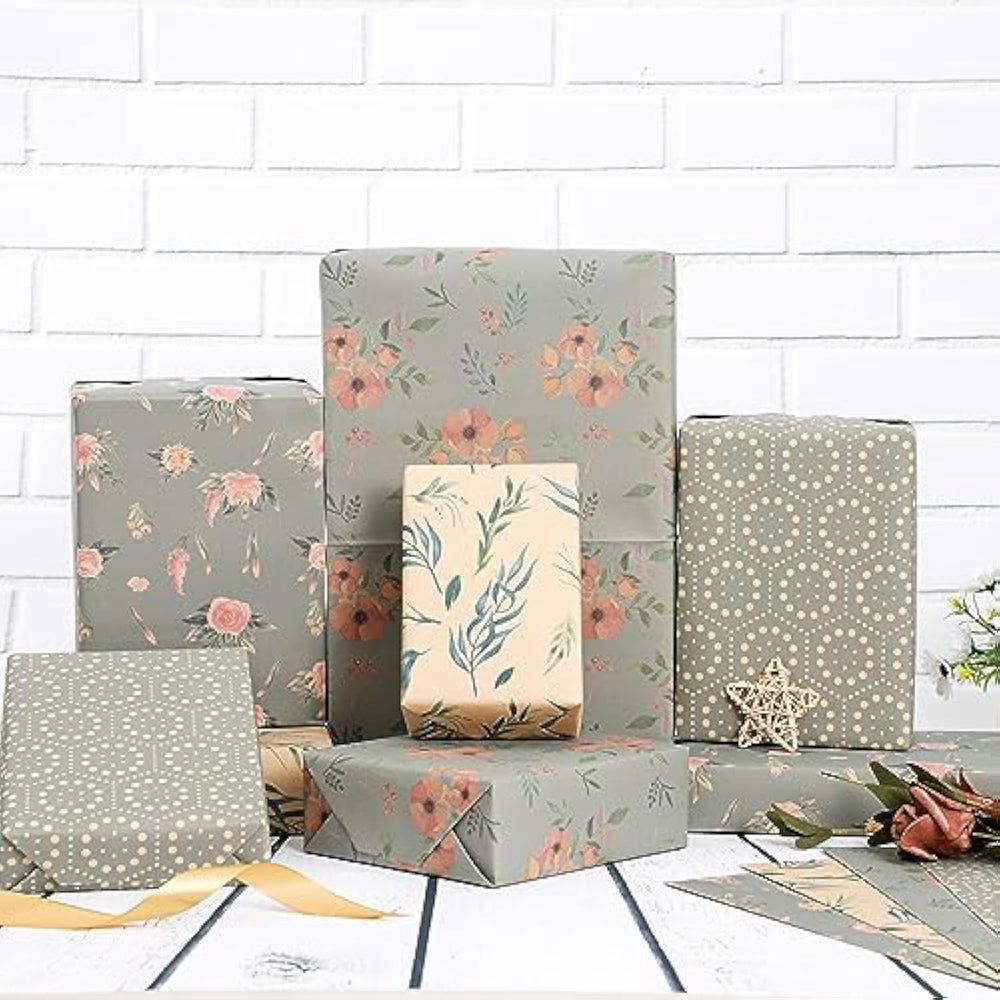 This set of floral kraft wrapping paper features four unique and stylish flower-inspired designs that add a charming and heartfelt touch to your gifts, making them perfect for occasions like Mother's Day. It includes 12 pre-cut and folded sheets, each measuring 20 by 29 inches, ideal for wrapping small to medium-sized presents. Made from high-quality, eco-friendly kraft paper, this wrapping set is both durable and recyclable. The folded sheet design makes it easy to use and store, while still delivering a beautifully presented gift despite minor creases or folds.
