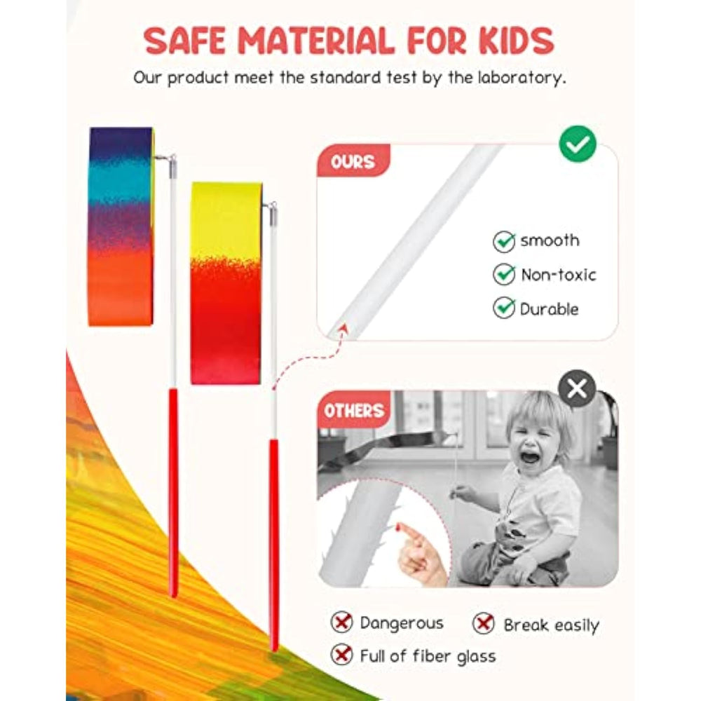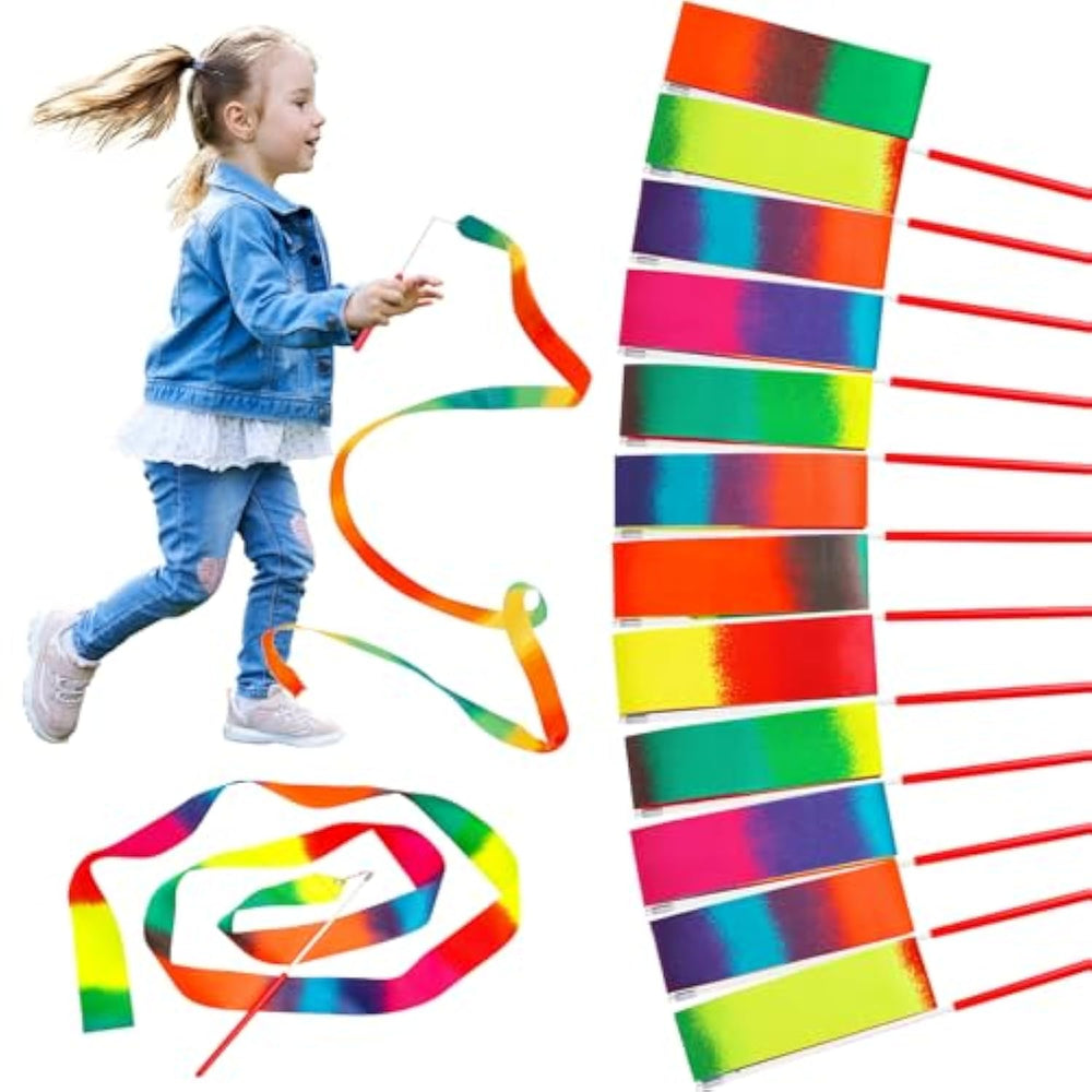 | Upgraded Material:Meet The Standard Test By The Laboratory,The Dance Ribbon Streamers Can Be Used By Kids Without Worry.The Gymnastics Ribbon Is Made Of High-Quality Silk And Red Plastic Coating Handle,Which Is Smooth,Non-Toxic And High Quality | | Kids'Favor Gifts:The Gymnastics Ribbons Can Be Used As Birthday Party Favors, Gymnastics Party Supplies,Rainbow Party Decorations And Goodie Bag Stuffers For Boys And Girls.Children Can Play The Wands Everywhere,Such As Classroom, Wedding, Preschool And Take Part In Various Interesting Activities, Such As Military Bands, Olympics, Artistic Dance, Physical Exercises, Carousels, Decorative Props, Etc. Activity | | Package Included:Each Package Contains 12 Dancing Ribbons Of Multicolors. The Ribbon Length 200 Cm/78.7 Inches And The Sticks Length: 30.5Cm/12 Inches,Which Is Enough For Kids And Adults To Dance | | Excite And Enrich Kids'Life:The Dance Ribbon Is Excellent For Promoting Your Child'S Creativity And Imagination.They Are Not Only Developing Children'S Intelligence, But Also Improving Their Physical Ability | | Multi Color:The Colorful Dance Ribbons Would Add Grace And Beauty To Any Dance Routine, Spin Up Like A Rainbow, Loved By Children.It Is A Good Choice To Enrich Your Life | |