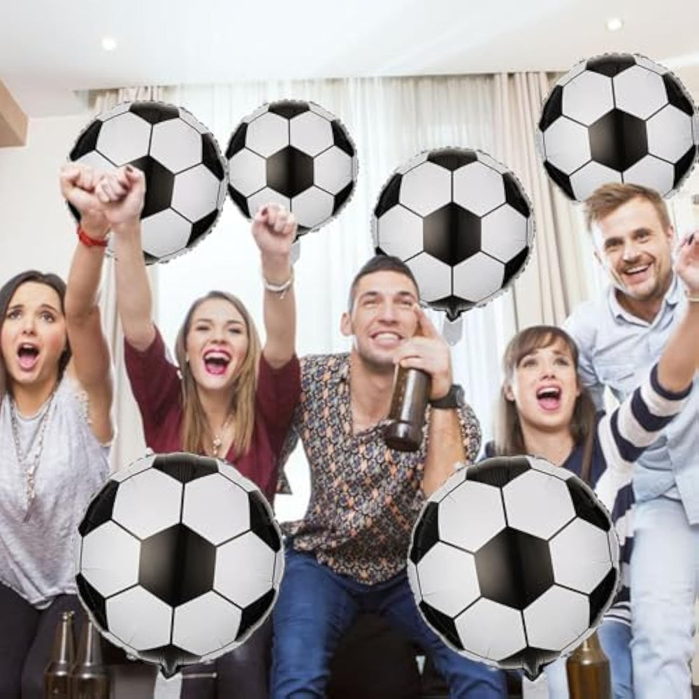 | Package Includes:The Set Includes 12 × Soccer Balloon (Approx. 18 Inches) , A Roll Of Ribbon And A Straw | | Easy To Use:There Are Enough Balloons In Each Set. Inflate Slowly With Air Or Helium; Just Fill 90% Of The Balloons Space That Could Allow The Balloon To Expand Completely. It Can Be Used To Decorate Birthday Parties, Which Can Make Your Party Look More Special | | Premium Material:The Balloons Are Made Of Aluminum Foil And Can Be Inflated With Helium Or Air. They Can Last For Several Days When Inflated And Can Be Used Repeatedly And Taken Out To Decorate The Party When Needed | | Balloons Decor:Our Sport Balloons Are Designed With Soccers Pattern, Making Them Perfect For Soccer-Themed Parties, Sports Events, Birthday Parties, And More. They Can Create A Lively And Exciting Atmosphere For Your Guests | | Wide Application:These Soccer Balloons Can Be Used As Decorations For Soccer Parties, Soccer-Themed Birthday Parties, Team Celebrations, And Will Be Easy To Highlight Your Party Theme, Can Also Be Used As A Backdrop, A Party Gift, Or A Photo Prop | |