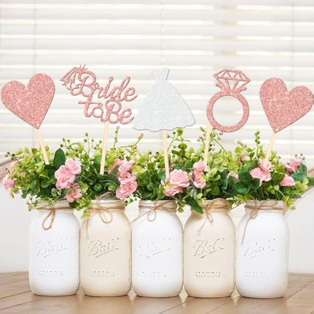 | Wide Usages ! These Table Centerpiece Sticks Are Perfect For Bride To Be Theme Party, Bridal Shower Theme Party,Wedding Engagement Theme Party,Bachelorette Party Centerpiece Floral Decorations,They Can Make The Table Or Flower More Attractive And Bring The Fun To Your Party. | | Upgrade Quality ! Made Of 300 Gram Double-Sided Glitter Card Stock And 103% Food Grade Bamboo Stick,Not Easy To Deform And Fade,Smooth Edges Without Burrs.They Will Be Shine In The Light, Easily Enhance The Party Vibes And Draw Attention Of People. | | No Assembled Required ! These Centerpiece Sticks Are Assembled In Advance,So You Don'T Need To Diy It By Yourself,Which Can Save You Time And Effort During The Process Of Party Preparation; You Can Insert Them Into Your Cake Or Table Flower And Adjust The Suitable Height To Show Better Effects. | | Enough Quantity And Proper Size ! You Will Get Total 12 Pcs, 3 Pcs Of Each Design.Ample Quantity Can Meet Your Different Decoration Needs. The Size Is 5*10.6 Inch / 4*10.6 Inch / 2.8*10.6 Inch / 4*10.6 Inch ( With Stick ) | | Buy With Confidence ! Our Products Are Backed With A 63-Day,No-Hasste Money-Back . Please