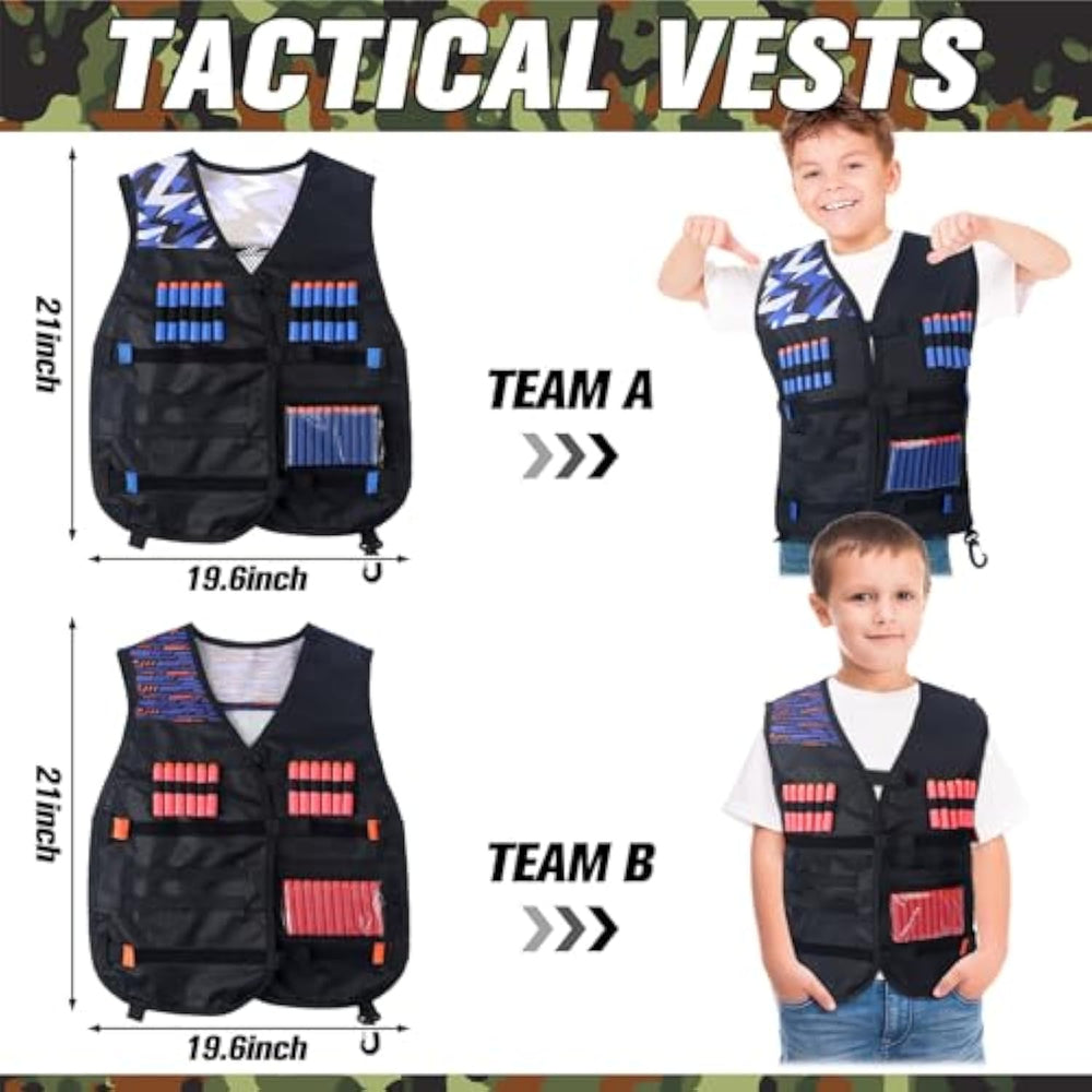 | Oxford Cloth | | Imported | | Comprehensive Game Set: Experience The Gaming Thrill With This Impressive Package Deal; Get A Comprehensive Set Of 60 Party Supplies Which Include 12 Tactical Vests, 12 Tactical Masks, 12 Wrist Bands, 12 Bags Of Refill Darts And 12 Pairs Of Protective Glasses; This Generous Combination Ensures That Your Gaming Needs Are Adequately Catered To Whether You'Re Planning A Themed Party Or A Friendly Outdoor Game | | Two Fun Colors For Team Play: With The Tactical Vests Divided Into Orange And Blue Colors, Team Games Just Got More Exciting! These Two Vibrant Colors Create Distinction Among Teams Making The Game Interesting And Competitive; Use The Colors To Strategize, Dominate And Win | | Versatility For All Events: These Party Supplies Are An Ideal Choice For Various Activities; From Outdoor Games, School Events, Friend Gatherings, To Themed Parties, These Tactical Vests And Accessories Bring The Fun Everywhere; Equip Yourselves And Dive Into The Thrilling Action Games That Form Part Of Memorable Experiences | | Quality Material For Your Peace Of Mind: Quality And Safety Is A Top Priority; The Clothing And Accessories Are Made Of Reliable, Sturdy And Quality Material, Ensuring You Can Use These Items Without Worry; Your Incredible Gaming Experience Starts With Our Uncompromising Quality Standards | | Ideal Present: Each Tactical Vest Kit Serves As An Exquisite Present Item For Both Boys And Girls, Classmates, Students Or Even For Yourself; Savor The Joy And Excitement On Their Faces As They Receive These Captivating Gaming Sets That Promise Countless Hours Of Fun And Entertainment | |