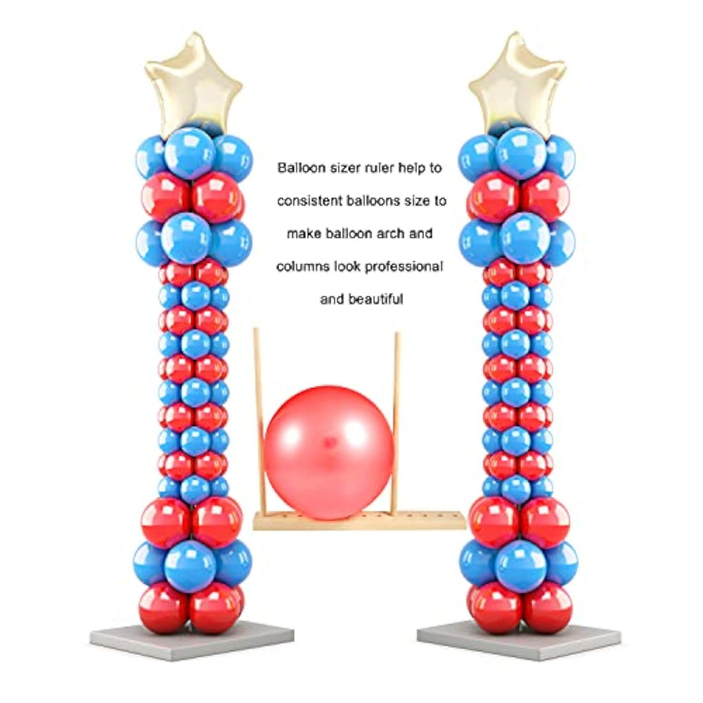 | Package Includes: 1 X Balloon Measuring Ruler Base With Holes And Size Marks, 2 X Long Wooden Sticks, 2 X Short Wooden Sticks | | Easy Usage: To Ensure The Accuracy, Please Firstly Insert One Wooden Stick Into The Number 0, And Then Insert Another Into The Size You Need | | 12 Sizes: Wooden Sticks Can Be Adjusted On The Measuring Ruler Base To Make 12 Sizes Of Balloons From 1 Inch To 12 Inch | | Light Weight: Made Of Pine Wood, Light And Handy, Easy To Assemble And Carry, You Can Take It To Any Occasions For Balloons Measuring | | Wide Applications: Suitable For Making Balloons For Birthday Party, Wedding, Baby Shower And Any Other Balloon Decor Celebrations | |