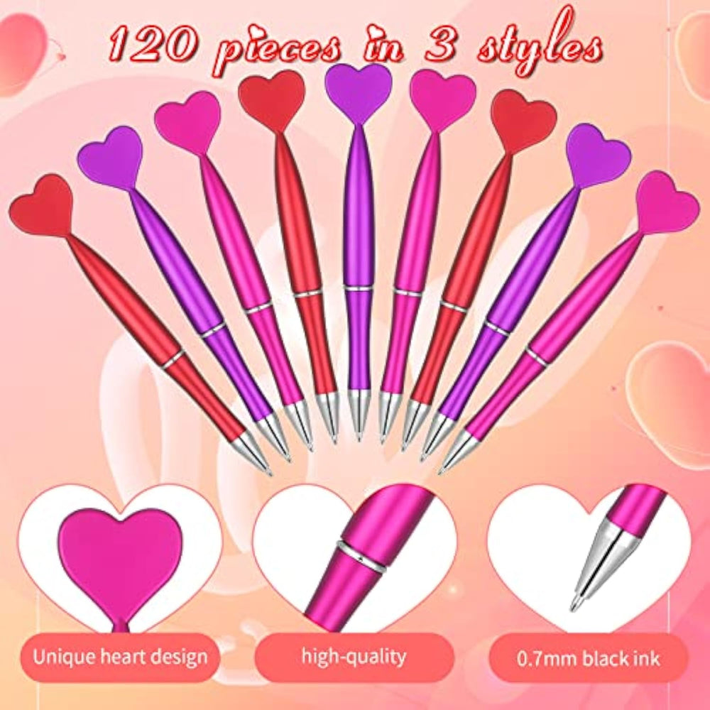 | Enough For Sharing: You Will Receive 120 Pieces Of Valentines Pens Bulk In 3 Colors, Including Red, Pink And Purple Color, 40 Pieces Per Color, Sufficient In Quantity And Complete In Combination To Daily Use And Replacement Demands, You Can Also Share With Your Friends And Family Members | | Smooth Writing Experience: These Heart Pens Feature A 0.7 Mm/ 0.03 Inch Point Tip, So That You Can Write A Clear Line, Smooth To Write, Easy To Dry, Hard To Tear Your Paper, Offering You A Nice Writing Experience | | Valentine'S Day Theme Design: The Cute Pen Adopts A Valentine'S Day Theme Design, Features A Heart On The Pen Top, Bright In Color And Lovely In Shape, Full Of Valentine'S Day Atmosphere, Bringing A Rich Atmosphere For You | | Size Details For Your Reference: Each Of These Valentines Pens Is About 16.5 Cm/ 6.5 Inches In Length, A Proper Size For You To Hold In Your Pencil Case, Pencil Bag Or Pocket, Allowing You To Use Anywhere | | Applicable For Many Occasions: These Valentine'S Day Pens Are Suitable For Various Occasions, Such As Office, Home, Wedding Venue And More, Not Only Are Pens, But Also Can Serve As Nice Decorations For These Places | |