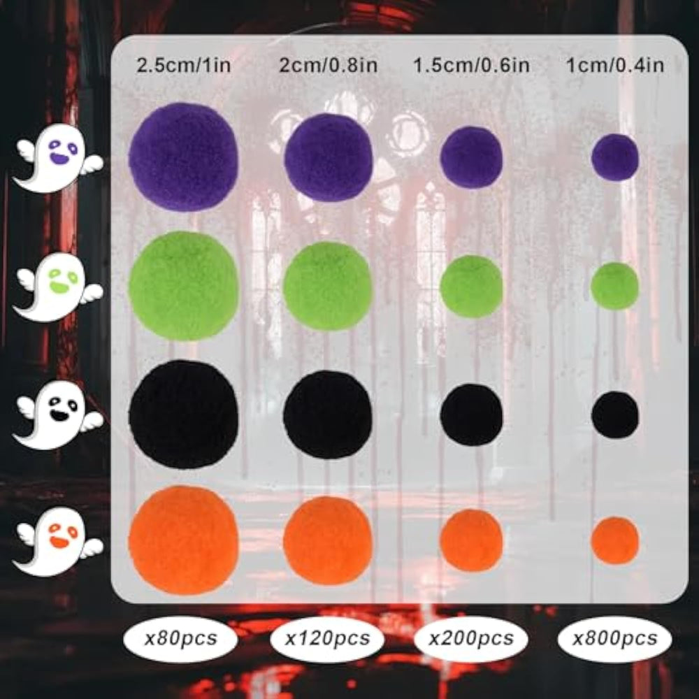 Bring your Halloween celebrations to life with this Rich Halloween DIY Pom-Pom Set, designed to inspire creativity and festive fun for the whole family. This set includes 1,200 colorful pom-poms in classic Halloween shades of black, green, orange, and purple, providing a vibrant palette for decorating and crafting. With four different sizes—0.4" (800 pcs), 0.6" (200 pcs), 0.78" (120 pcs), and 1" (80 pcs)—you’ll have a variety of options to create layered, dynamic designs suitable for any DIY project. Crafted from durable polypropylene and metallic threads, these pom-poms are soft, safe, and resistant to fading or breaking, ensuring long-lasting use across multiple projects. Perfect for Halloween parties, family activities, weddings, engagement parties, and other celebrations, they can be used to make bouquets, pendants, clothing and shoe accessories, ornaments, or other festive decorations. Whether you’re planning to create personalized gifts, fun holiday crafts, or unique DIY decorations, this set provides endless opportunities to explore your imagination, offering a delightful experience for both children and adults alike. It’s an essential addition to your craft supplies, making every project colorful, playful, and memorable.
