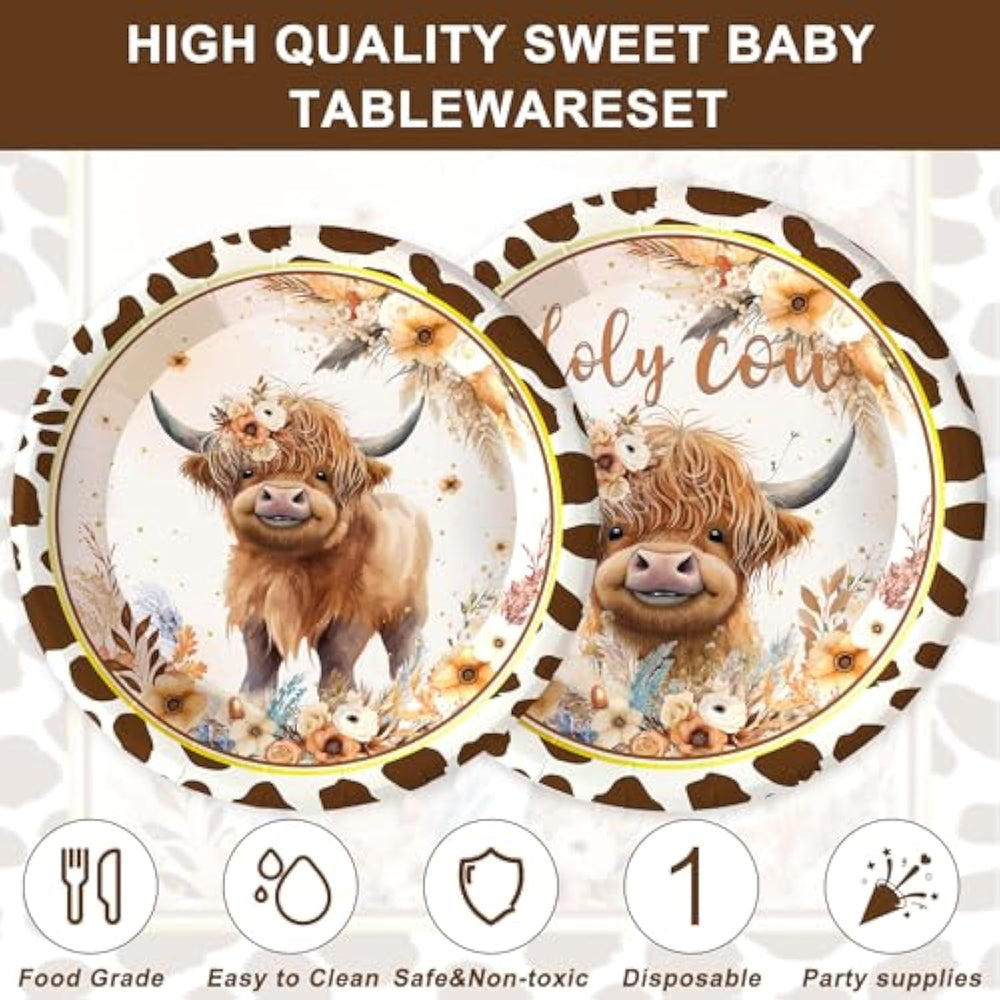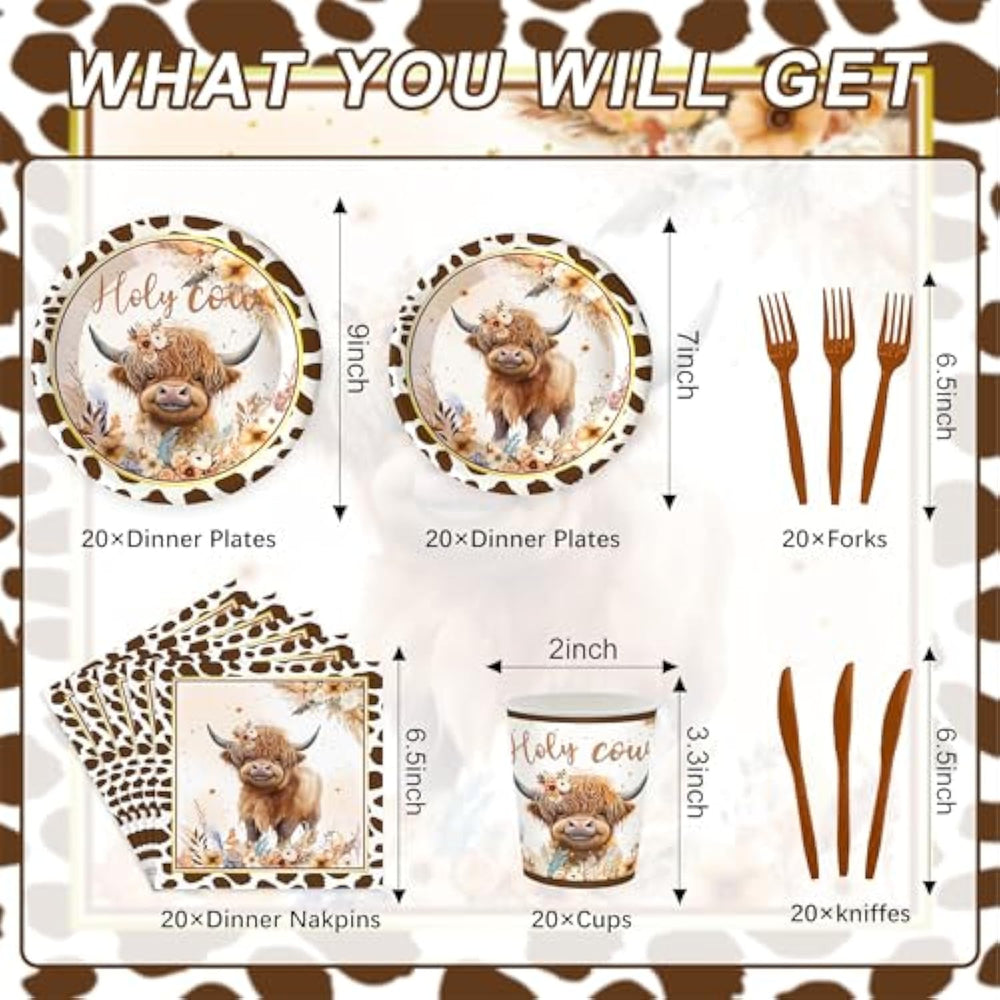 | ?Unique Design? Highland Cow Tableware With Classic Cartoon Images, Bright Prints And Bright Colors Will Create The Most Festive Atmosphere For You And Your Guests. With Its Stylish Design And Cute Characters, It Is Sure To Be A Hit With Kids And Adults Alike! To Meet Their Expectations! If You Want To Have A Creative Party, Then You Must Not Miss This Set Of Birthday Decorations. This Set Of Birthday Decorations Can Be A Great Experience For Your Children And Their Friends. | | "?Serves 20 Guests?In Highland Cow Themed Party Packs,You Will Get ? 9Inch Plate X20 ?? 7Inch Plates X20?? Napkins X 20, ? Cups X 20, ? Knives X 20??Forks X 20 .Total 120Pcs Highland Cow Birthday Party Tableware. " | | "?Premium Quality?The Highland Cow Birthday Party Tableware Set Are Made Of High Quality Paper Materials, Environmentally Friendly, Odorless, Heat Resistant? Oil Resistant And Durable, The Printed Patterns Are True To Color And Fade Resistant, Can Hold Up Well With Any Kinds Of Food,Providing You With A Theme Party Full Of Color. " | | "?Easy To Clean?This Highland Cow Birthday Tableware Set Can Be Discarded Directly After Use, Saving Cleaning Time, And The Paper Material Is Not Easy To Damage The Environment, Saving You A Great Deal Of Cleaning Time, So You Can Spend More Time Enjoying The Party And Spending Time With Your Family, Friends And Guests. " | | "?Wide Range Of Applications?This Highland Cow Themed Party Tableware Set Is The Perfect Addition To Your Birthday Party And It Will Match Any Of Your Other Party Decorations. There Are Perfect For Girls Parties, Birthday Parties, Indoor And Outdoor Events, Arts And Crafts Projects, Holiday Decorations, Home Use, Table Decorations And Any Other Celebration. " | |