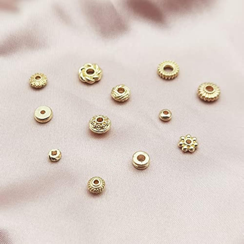This set includes 120 spacer beads, with 10 pieces of each of 12 different styles. The beads come in a beautiful pale gold color and are made from premium brass or eco-friendly zinc alloy with noble metal plating, ensuring durability and resistance to fading. These ornately-detailed spacer beads are perfect for transforming ordinary beads into unique, extraordinary jewelry pieces.
