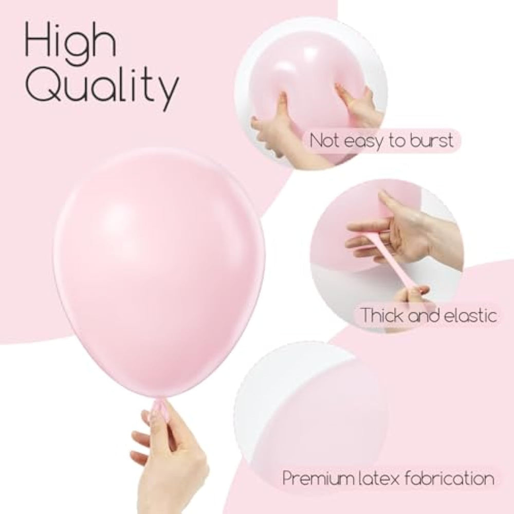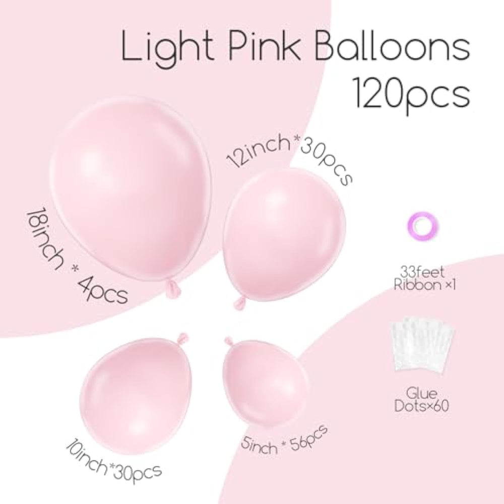 | Package Include: The Pink Balloons Different Sizes Pack Included 120Pcs Pink Balloons(18 Inchx4, 12 Inchx30,10 Inchx30, 5 Inchx56), 60Pcs Glue Dots And A Roll Of 33 Feet Pink Ribbon | | Great Quality: The Light Pink Balloon Garland Kit Are Made Of Premium Natural Latex. Each Balloon Undergoes Rigorous Testing And Selection, Can Be Offer Superior Elasticity And Durability, Being Thicker And Less Likely To Burst | | Easy To Assemble: We Will Provide Ribbons And Glue Dots As Tools To Help You To Assemble Balloon Arch Kit More Easily And Effectively. First, Inflate Balloons To Various Sizes. Then, Secure The Balloons Together With Ribbons And Hang Them On The Party Backdrop Or Walls. Finally, Use Glue Dots To Attach The 5 Inch Balloons To Fill Spaces Between Balloon Arch | | Widely Occasions: The Light Pink Balloon Arch Kitare Widely Used For Different Occasions Party, You Can Effortlessly Combining With Other Colored Balloons To Create Beautiful Balloon Arch Or Garland Kit To Match Your Party Theme. Such As, Pink And White, Pink And Red, Pink And Gold For Birthday Decorations And Wedding Decorations | | Warm Reminder: The Balloon Can Be Filled With Air Or Helium, You Can Use Balloon Pump To Inflate, But Don'T Blow The Balloon Too Full To Keep A Good Shape. We Are Dedicated To Great Service, If You Have Any Issues, We Will Work Hard To Solve Them | |