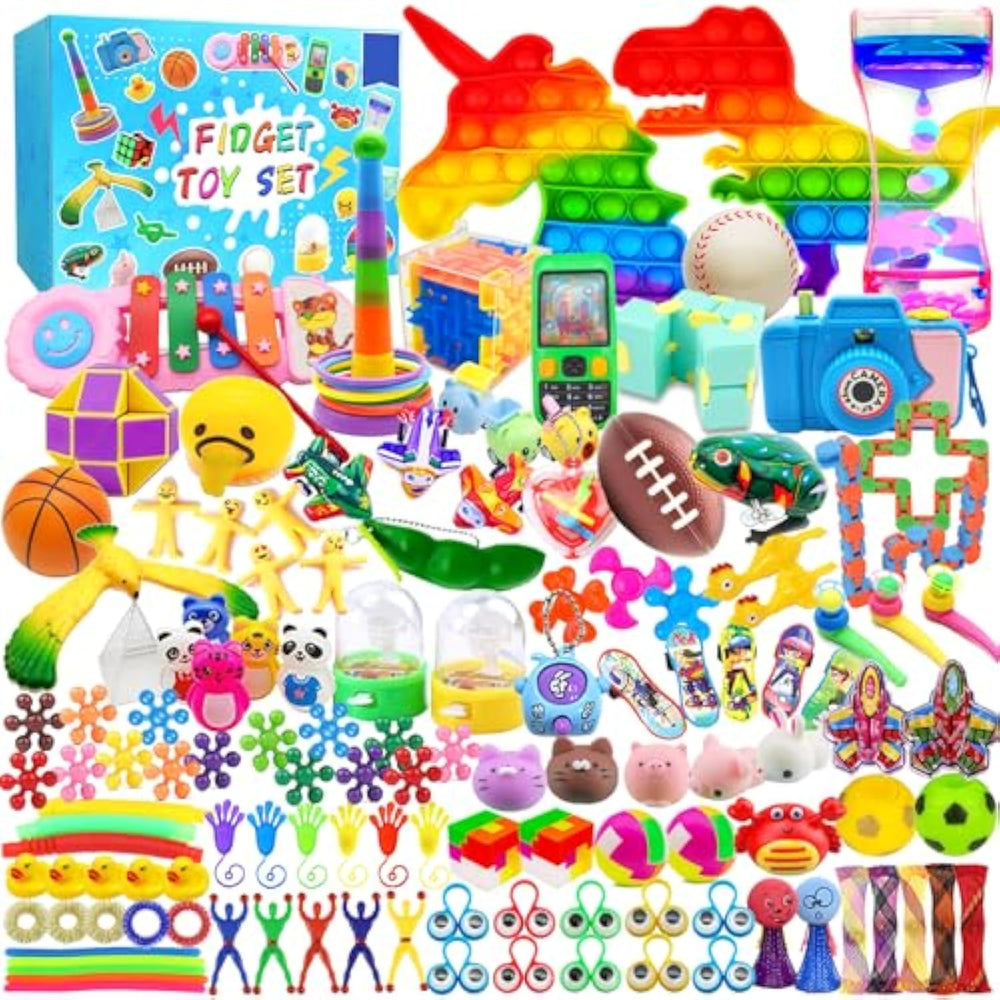 | ?125 Pcs Kids Party Favor??43 Kinds Of Toys Can Effectively Attract Children'S Attention, Expand Their Minds And Develop Their Creativity. Such As Huge Fidget Toys,Infinity Sensory Cube,Maze Puzzles,Pull Back Cars, Wacky Track,Finger Spinners,Balancing Eagle,Squeeze Balls,Soft Squeeze Toys,Clockwork Spring Frog,Piano Toy,Ring Toss And Other Games. Keep Your Mind Focused And Your Hands Busy. | | ?Stress Relief Sensory Fidget Toys??Have Fun Anytime, Anywhere With These Great Sensory Fun Toys.These Toys Help Reduce Stress, Anxiety, And Improve Focus And Concentration For Anxious Children, Stressed Adults, And Forgetful Seniors When You'Re Bored On The Go, Keep Your Hands Busy Flipping For Fun. | | ?Exquisite High Quality??You Will Receive A Beautiful And Sturdy Treasure Chest Containing 125 Party Toys. These Toys Are Safety Tested, Durable, Washable And Reusable. When Not Playing They Can Be Stored In The Box, Beautiful And Not Easy To Lose. | | ?Colorful Toy Bundle??Each Variety Of Toys Is Randomly Colored To Ensure That Boys And Girls Of All Ages Have The Fun They Want. Children Will Be Instantly Drawn To These Brightly Colored Toys And Everyone Will Be Happy. Especially Great For Entertaining Kids At Any Celebration. | | ?Suitable For Various Scenarios??43 Kinds Of Party Toys Set, Suitable As Party Gift Bag Filler, Birthday Gift, Pinata Filler, School Classroom Reward Treasure Box, Christmas Gift, Bring Endless Joy To The Children. | |