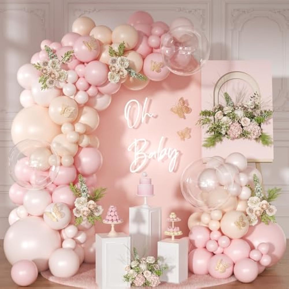 This 126-piece pink balloon arch garland kit includes 6pcs 18-inch, 60pcs 10-inch, and 60pcs 5-inch balloons, along with a balloon chain and glue point, allowing you to create a stunning light pink balloon display. Made from high-quality, non-toxic, and durable materials, these balloons are safe for everyone and long-lasting. Perfect for various occasions, this pink balloon arch is ideal for birthdays, baby showers, weddings, engagements, bridal showers, bachelorette parties, gender reveals, anniversaries, graduations, and more.