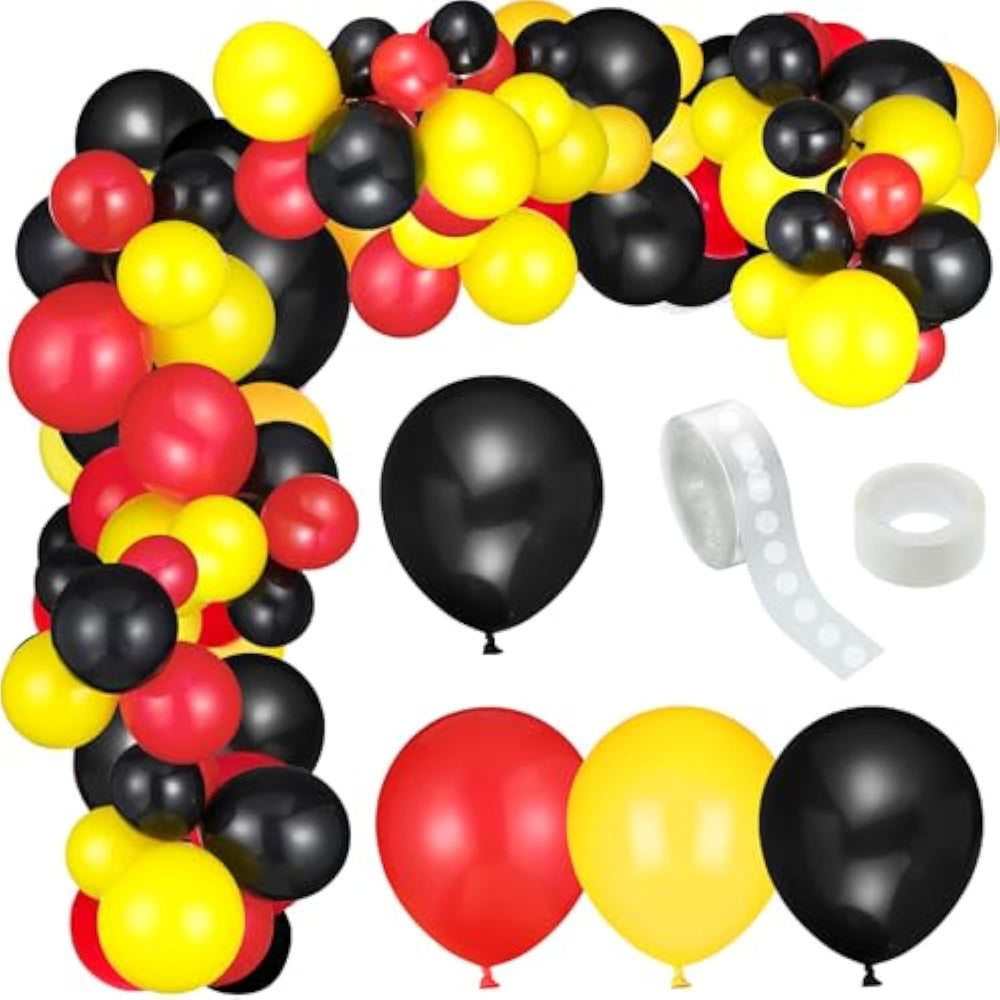 | What You Will Get: You Will Receive 127 Pieces Balloon Items, Including 120 X Latex Balloons, 5 X Checker Flag Balloons, 1 X Single Chain And 1 X Dispensing Roll, Sufficient Quantity To Meet Your Daily Use, And You Don'T Have To Worry About The Shortage Of Quantity, Which Can Meet Your Various Needs | | Quality Material: These Balloons Are Made Of Quality Latex, Each Balloon Is Strictly Tested And Chosen By Hand; It Can Be Filled With Air Or Water; And The Balloon Tools Can Make Balloons Knot Quickly And Stick Together Easily | | Size Information: Our Balloons Are Divided Into 3 Different Sizes, The Checkerboard Balloon Is Approx. 45 Cm/ 18 Inches, The Red Black Yellow Latex Balloon Have 5 Inches And 10 Inches, Different Sizes Give You More Choices And Decorate Different Compartments | | Various Applications: Balloon Decoration Chain Can Make Various Types Of Balloon Arch Kits, Brings Eye-Catching Decoration To Your Party; Suitable For A Wide Range Of Scenes, Halloween Parties, Boys And Girls Birthday Party Supplies, Baby Shower, Bride Shower, Wedding, Any Party Decoration For Children, Etc., Will Add A Strong Festive Atmosphere | | Nice Gift Choice: The Red Yellow Black Balloons For Birthday Party Can Not Only Be Worn On The Balloon Wreath, But Also Can Be Applied As The Core Point To Give A More Funny Atmosphere, Which Will Be Praised By Your Friend And Family; It Is A Good Choice For Birthday Party | |
