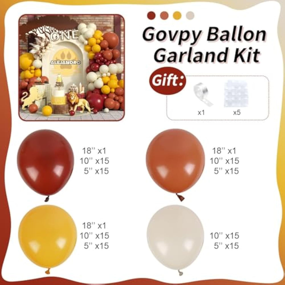This 129-piece harvest theme balloon garland kit includes maroon, burgundy, dusty orange, mustard yellow, and beige balloons in multiple sizes, along with a balloon strip and glue dots for easy assembly. Inspired by autumn forests and wild safari vibes, the rich earthy tones create a warm and adventurous atmosphere, perfect for birthdays, baby showers, jungle parties, wizard themes, and seasonal gatherings. Made from durable latex, the balloons are thick, long-lasting, and resistant to popping, ensuring they stay vibrant throughout your event. With simple DIY setup, you can inflate, attach, and shape the garland to fit any space, making it an eye-catching backdrop for both indoor and outdoor celebrations.