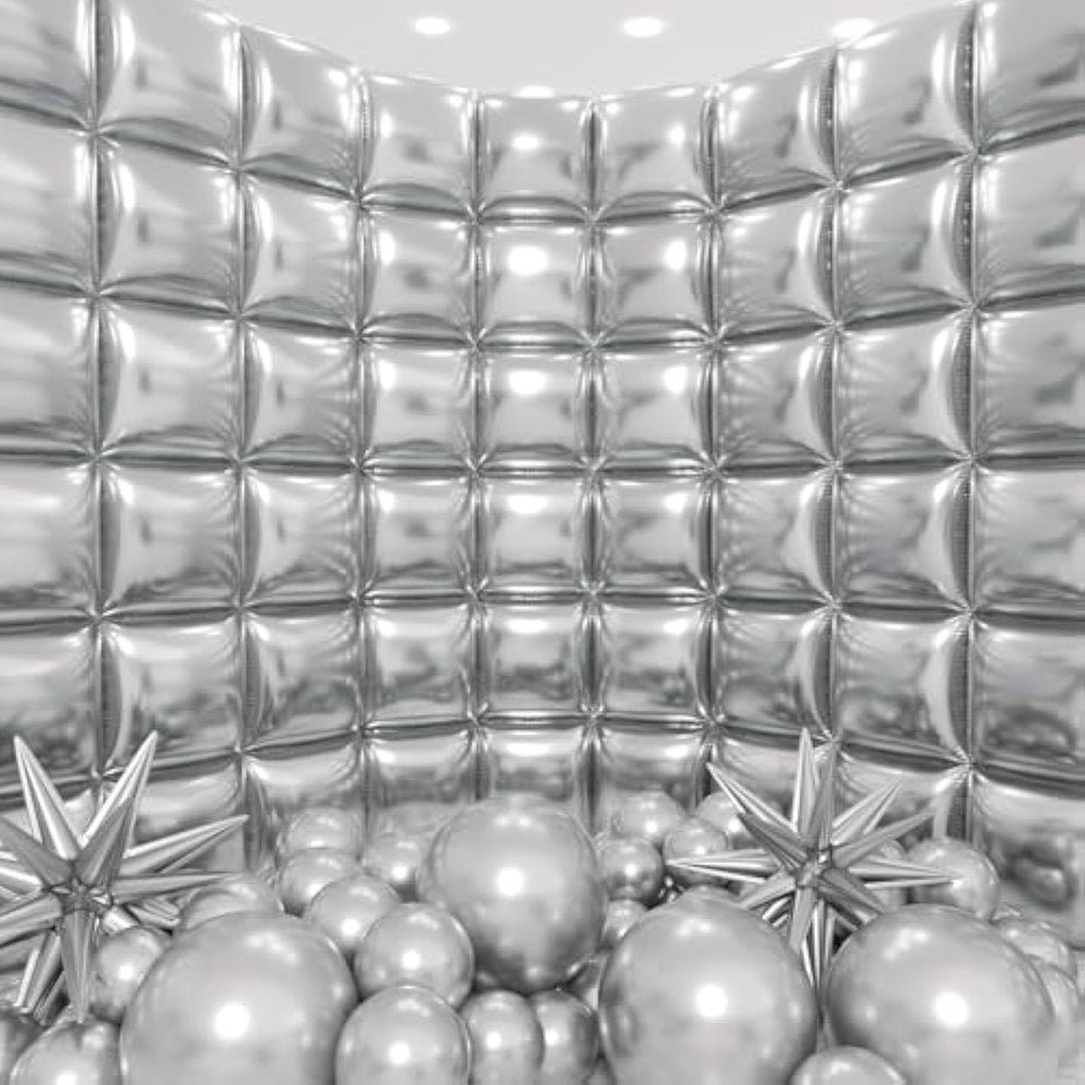 This square foil balloon kit includes 50 vibrant metallic silver balloons perfect for creating a stunning balloon wall backdrop that adds elegance to any event. Alongside the square foil balloons, the set features 79 assorted balloons including 22-inch silver explosion star balloons and a variety of metallic silver latex balloons in sizes 5, 10, 12, and 18 inches. Made from premium aluminum film and durable latex, these balloons are designed to resist air leakage and maintain their shape while their reflective surfaces ensure your decorations shine beautifully in both indoor and outdoor settings.