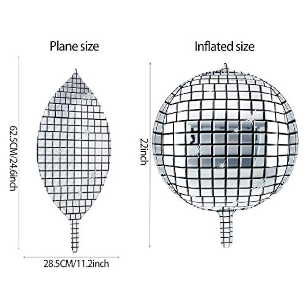 These durable disco balloons are made of quality aluminum foil, ensuring stability and multiple uses without bursting. Featuring a self-sealing function, they can be filled with air or helium for easy inflation. The set includes two rolls of silver ribbons, and each balloon has holes on top for convenient hanging on ceilings, windows, or doors. Measuring approximately 22 inches when inflated, these large balloons are eye-catching and perfect for any celebration.