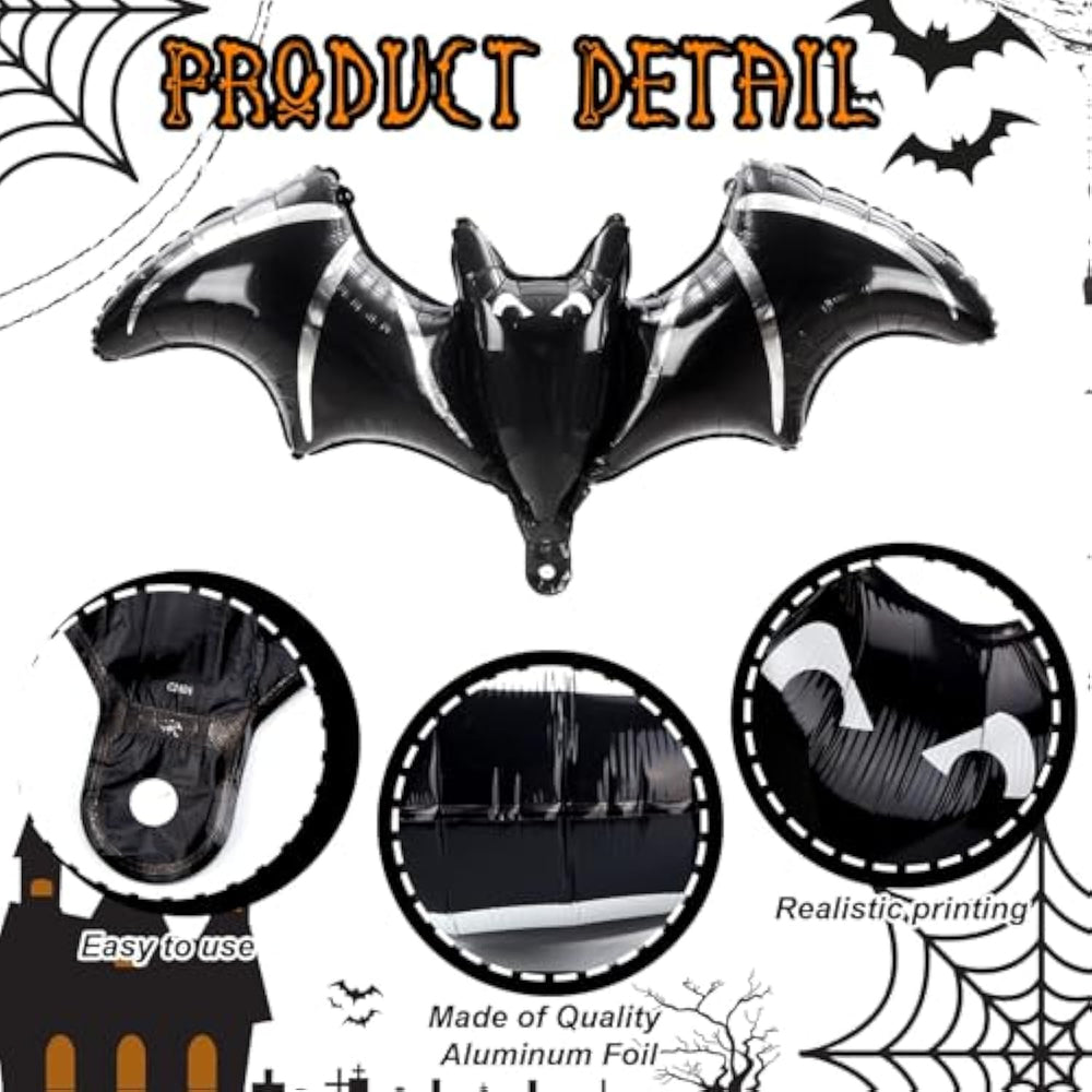 This set includes 12 giant black bat balloons, a roll of black ribbon, and two straws, with each bat measuring approximately 48 inches. Made from durable foil, the balloons are lightweight, reusable, and feature a self-sealing design for easy inflation and long-term storage. Their realistic bat design adds a spooky touch, making them ideal for Halloween parties, haunted houses, horror-themed events, or themed birthdays. Simple to inflate with a straw or pump, they can be hung on walls, ceilings, doors, or arranged into arches, serving as centerpieces, photo backdrops, or creative décor to elevate any festive or eerie atmosphere.