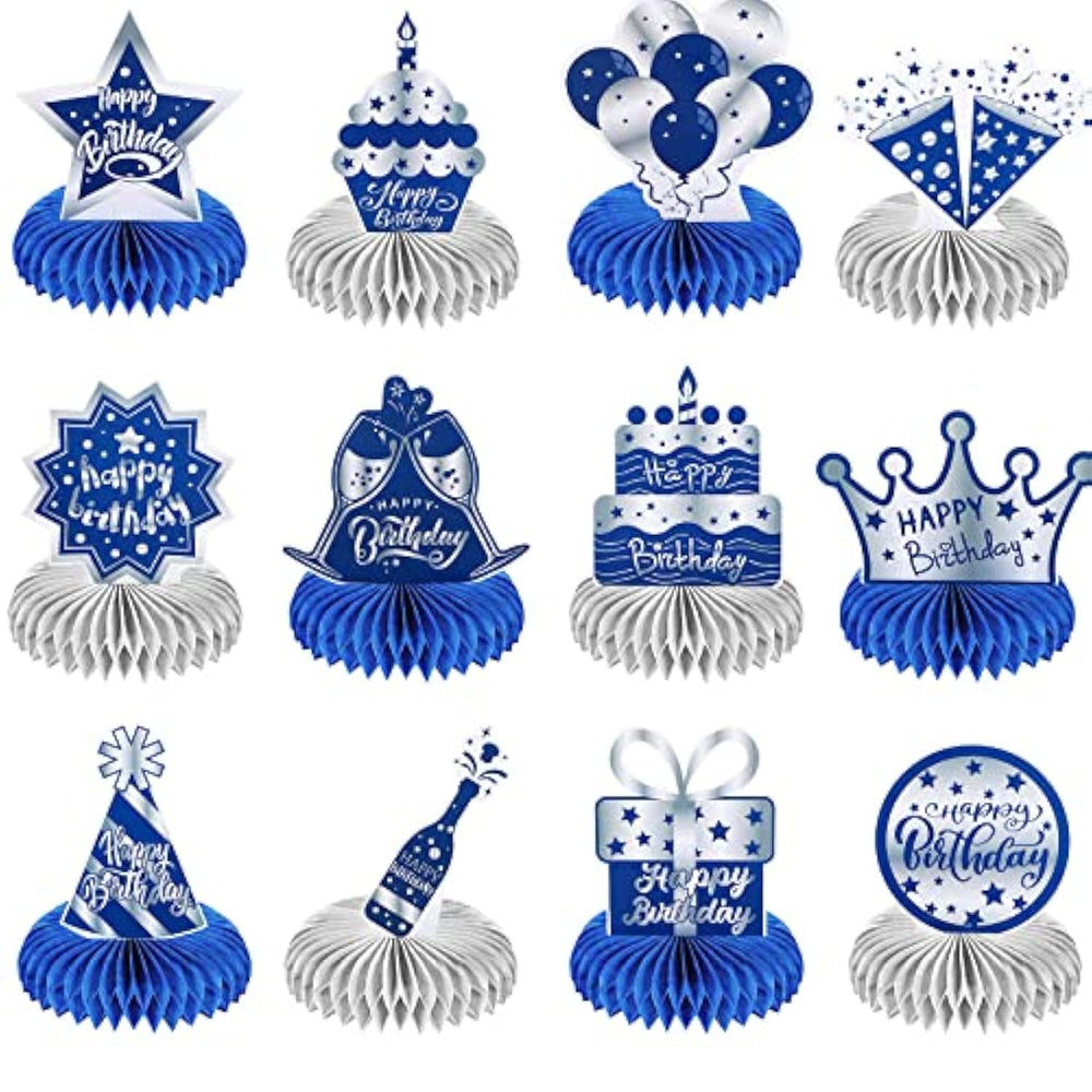 The package includes 12 beautifully designed silver and blue table centerpieces, each featuring unique patterns to meet your birthday or special occasion decoration needs. With vibrant blue and silver colors, these centerpieces incorporate fun birthday party elements like balloons, cakes, gifts, wine glasses, and crowns, adding a lively and joyful atmosphere to your celebration. Made from sturdy, high-quality cardstock, these decorations are lightweight, durable, and have clear, vibrant prints that won't fade, ensuring they impress your guests and enhance the festive mood of your event.