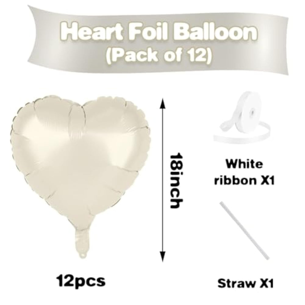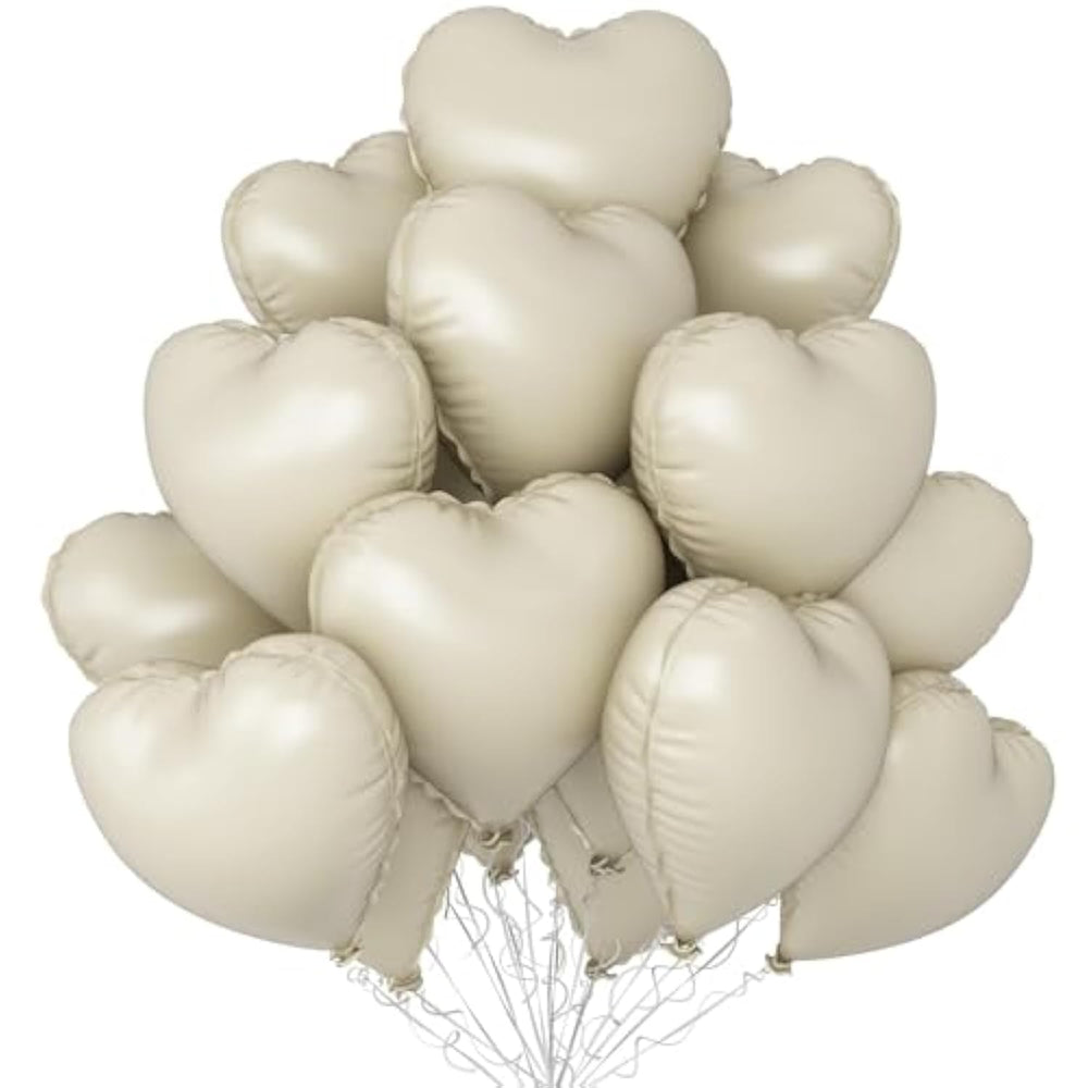 This Cream Heart Balloon package includes 12 pieces of 18-inch cream heart balloons, 1 roll of white ribbon, and 1 straw, making it perfect for creating a romantic and cheerful atmosphere at any special event. Whether for a wedding, baby shower, Valentine's Day, or anniversary, these balloons add a beautiful touch to your celebration. Made from premium-quality latex, they are thicker and more durable, ensuring they last throughout your event without easily breaking. Compatible with both helium and air, they are ideal for a wide range of occasions, instantly enhancing the mood with their delightful color and shape. Easy to inflate with a balloon pump or helium tank, these balloons can be quickly secured with the included ribbon for a polished finish, making setup simple and stress-free.