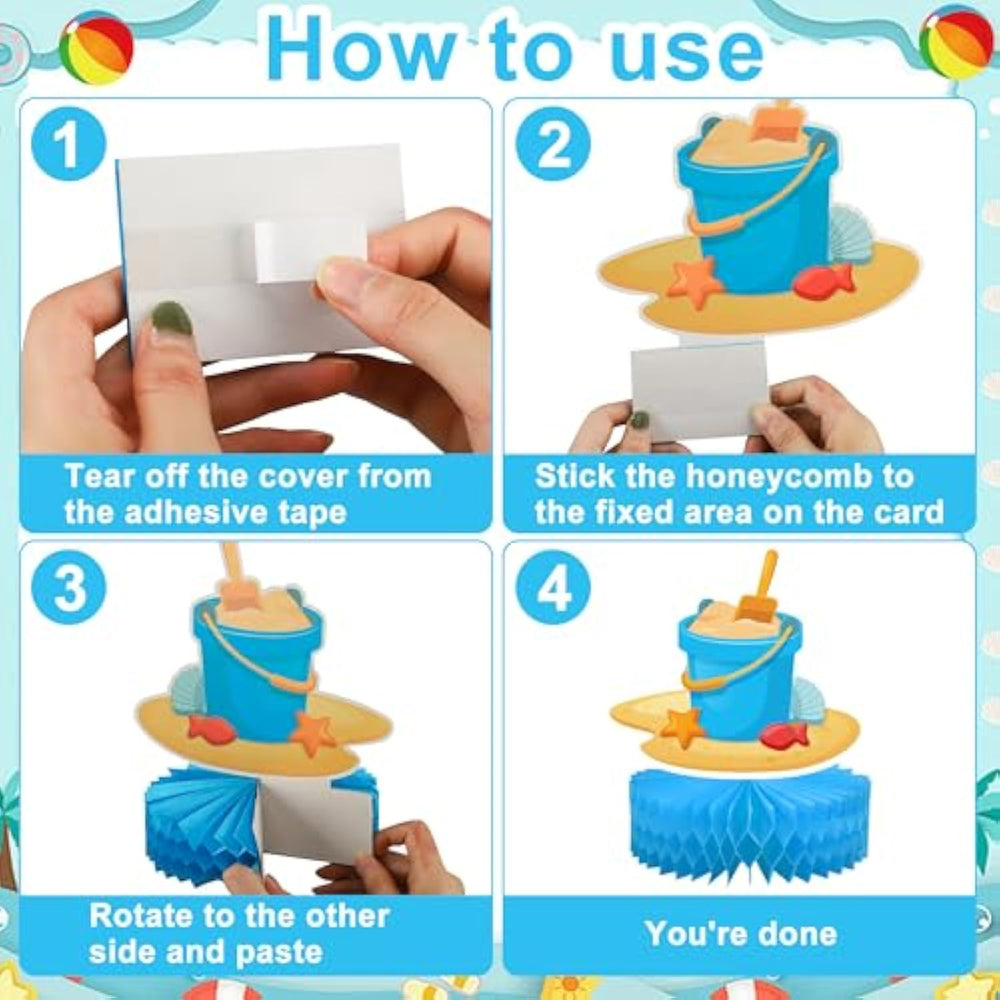 | What You'Ll Get: You'Ll Receive 12 Summer Beach-Themed Honeycomb Decorations. Ample Quantity And Variety Of Styles To Meet Your Home Or Party Decoration Needs, Creating A Warm Summer Atmosphere. | | Hawaiian Elements: These Cute Honeycomb Decorations Feature Cute Summer Beach Elements Such As The Sun, Palm Trees, Coconuts, Flamingos, Swimming Rings, Beach Chairs, Beach Volleyball, Surfboards And Watermelons, Etc.. Matching With Bright Colors, They Are Attractive And Exquisite. | | Quality Material: This Hawaiian Honeycomb Decoration Is Made Of High-Quality Cardboard, Thick And Strong, Not Easy To Break. The Double-Sided Printing Process Ensures Bright Colors And Is Not Easy To Fade. | | Easy To Assemble: Just Remove The Tape, Attach To The Bottom Of The Paper Card. Then Unfold The Honeycomb Base 360°And Attach The Other Side Of The Base To The Other Side Of The Paper Card. You Can Firmly Stand Them On The Table. Place It In Your Favorite Display Area To Easily Decorate Your Party. | | Various Occasions: This Hawaiian Honeycomb Decor Is Perfect For Summer Parties, Beach Pool Vibrant Colors And Playful Designs Will Delight Guests And Enhance The Overall Tropical Atmosphere. The Vibrant Colors And Playful Designs Will Delight Guests And Enhance The Overall Tropical Atmosphere | |