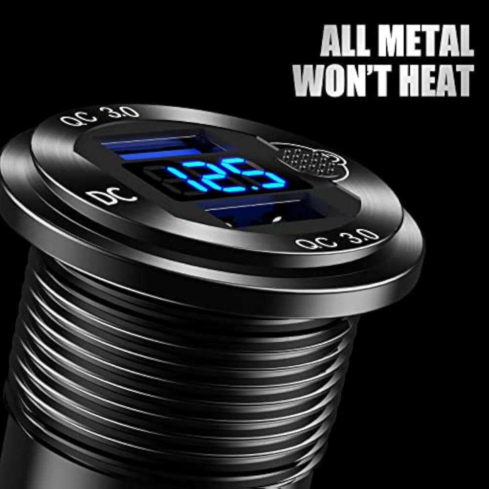 | [Dual Qc 3.0 Usb Ports] Equipped With High Quality Dual Qc 3.0 Usb Ports, It Charges Two Compatible Devices Up To 4X Faster Than Traditional Charging And Is Compatible With Qc 2.0/1.0. It Also Provides The Fastest Charging For All Non-Fast Charging Devices. | | [Aluminum Material] The Advanced All-Aluminum Body With Scratch-Resistant Technology Keeps It Sturdy And Keeps The 12V Usb Outlet Looking Like New Forever. The Upgraded Metal Usb Cigarette Lighter Socket Will Not Overheat At High Temperatures, Which Is Safer Than Plastic Ones. | | [Led Voltmeter Display] Features A Blue Led Voltmeter That Automati