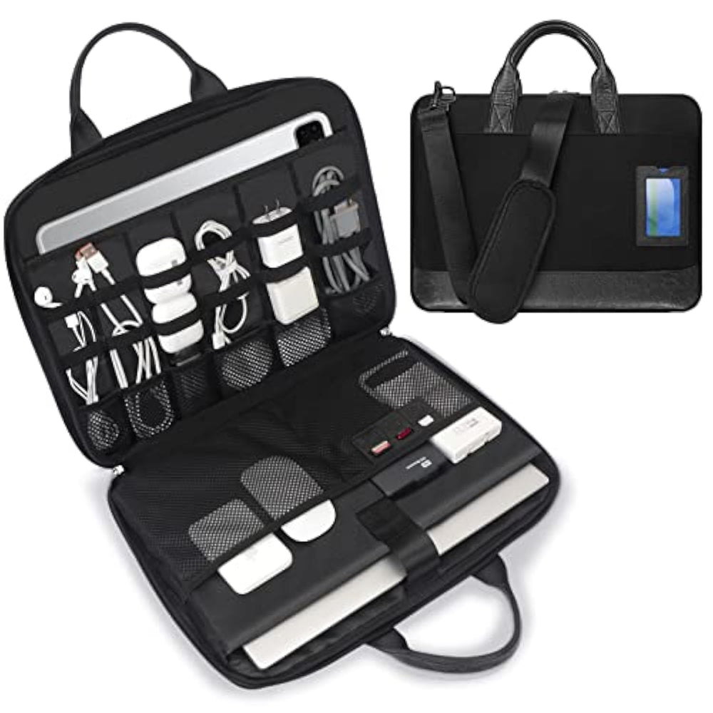 | ?Compatibility?The Laptop Case Includes An Integrated Laptop Compartment That Comfortably Fits Laptop Up To 13.3’’, A Range Of Different Size Internal Pockets For Various Accessories, And Stationary. | | ?Storage Space?This Laptop Bag Has 2 Pocket With Front And Back Protection For Laptop/Ipad/Tablet, 7 2-Layer Elastic Bands, 7 Mesh Bags, 2 Large Mesh Bags, 3 Sd Card Holders. A Great Organizer For People With A Lot Of Accessories And Want To Bring Them On To Go. | | ?Shockproof?The Electronic Case Has 3 Pieces Of Foam Pads For Protecting Laptop And Tablet Screen. The Bottom Of The Case Is Added Diving Fabric For Buffering Impact Force. | | ?Waterproof?The Laptop Carrying Case Offers A Water-Repellent Fabric And Xxx Design That Makes It For College Students, Busy Professionals, And Anyone On The Go. | | ?Multi-Function?The Computer Messenger Bag Includes An Outside Card Slot For Convenient Showing Out, And The Luggage Strap For Travelling. Shoulder Strap For Freeing Hands. Search Term: |