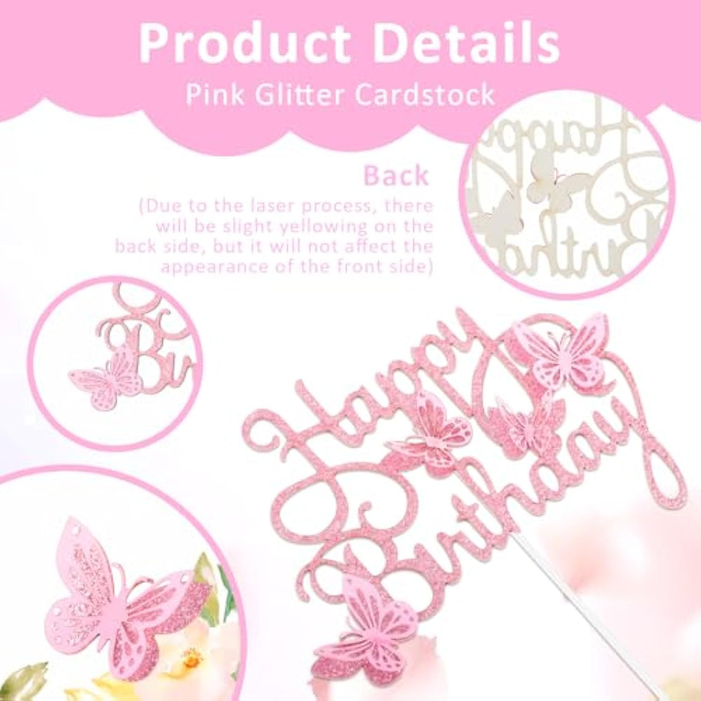 | ?Package Includes?You Will Get 1 Butterfly Cake Topper With "Happy Birthday" Written On It And 12 Regular Butterfly Cupcake Toppers. These Butterfly Cake Decorations Come With Assembly Pieces That Can Be Placed Directly On Your Cake To Make Your Cake Look More Lively And Interesting. | | ?Safe Material?The Pink Butterfly Cake Decorations Are Made Of Thick Glossy Cardstock, Which Has High Durability And Is Non-Toxic And Safe. Cake Butterflies Are Suitable For Food Decoration And Can Be Used Multiple Times. Butterfly Toppers Pair Perfectly With Cakes, Cupcakes, Pies, And Other Desserts, And Can Even Be Used As A Garnish On A Variety Of Appetizers To Add To The Ambiance Of Your Butterfly-Themed Birthday Party. | | ?Size?Happy Birthday Butterfly Cake Topper Is 5.11X3.93 Inches (Plastic Stick Is 5.51 Inches), And Cupcake Butterfly Toppers Are 2.16X1.57 Inches (Wooden Stick Is 4.05 Inches) The Birthday Cake Toppers For Women Size Is Suitable For Cakes And Cupcakes. | | ?Diy Required?This Pink Butterfly Cake Decor Is An Easy-To-Assemble Birthday Party Decoration. You Can Easily Assemble The Cake Topper Butterfly By Simply Gluing The Parts Together Using Adhesive. | | ?Widely Use?The Cake Butterfly Decorations Are Suitable For Cakes From 6 To 10 Inches, And Its 3D-Designed Butterfly Image Is Lifelike, Perfect For Weddings, Fairy Tale Theme Parties, Anniversaries, Birthday Parties, Baby Showers, And Even Wall Decorations. You Are Free To Create Designs According To Your Preferences. | |