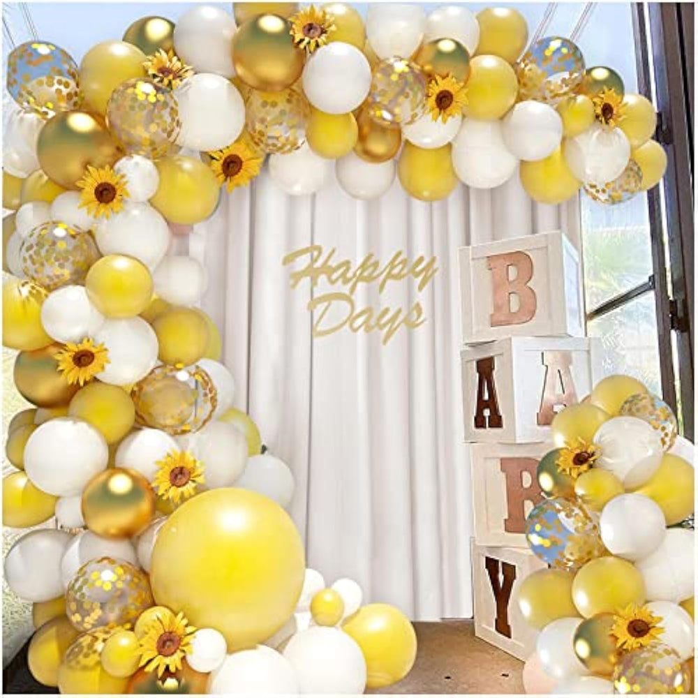 Create a stunning sunflower-themed party with this balloon garland kit, perfect for baby showers, birthdays, gender reveals, bridal showers, engagements, weddings, and more. The balloons ship flat and require inflation and assembly, which may take one to three hours. For convenience, use an electric or hand pump (not included). No helium is needed, and the kit includes instructions and garland tape for easy setup, making it a beautiful backdrop for any celebration.