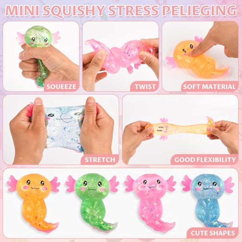 | Large Quantity Axolotl Party Supplies: You Will Receive A Total Of 12 Axolotl Squeeze Toys, 12 Keychains, 12 Stamps, 12 Axolotl Straws,12 Slap Bracelets, 12 Make Your Own Axolotl Stickers, 12 Gift Bags And 50 Axolotl Stickers, Such A Rich Combination Is Enough To Meet Your Daily Or Party Needs. | | Axolotl Design: Each Accessory Contains Rich Axolotl Elements, Fashionable And Cute Design. Whether You'Re Hosting A Birthday Party Or Handing Out These Little Gifts In Class, Kids Will Be Delighted To Receive These Axolotl Goodie Bags. | | Ideal Axolotl Gifts For Kids: Our Axolotl Gift Sets Are Perfect As Axolotl Pinata Fillers, Party Favor Bags, Axolotl Party Favors, Birthday Party Axolotl Decorations, Gift Bag Fillers, Classroom Rewards, Little Axolotl Party Decorations Gifts, Party Favors, Carnival Prizes, Easter Basket Fillers. These Party Favors Are Sure To Be A Hit With Kids Of All Ages! | | Reliable Material: The Axolotl Palm Bracelet Is Made Of Flexible Steel Plate And Is Not Prone To Fading. The Axolotl Party Theme Stickers Are Made Of Pvc. The Squeeze Toys In The Shape Of A Axolotl , Made Of Safe Materials, With A Shape That Can Be Rubbed Freely, Making It Easy And Fun. If The Toy Gets Dirty, Rinse It With Clean Water And You Can Continue To Play With It. The Gifts For The Axolotl Party Are Safe And Reliable, Odorless, Brightly Colored, And Have Smooth And Round Edges. | | Practical Application: These Axolotl Toys And Paper Bags Can Be Used At Home, School, Hotel, Office And Other Occasions. Stickers And Slap Bracelets To Keep Your Kids Entertained At Parties. | |