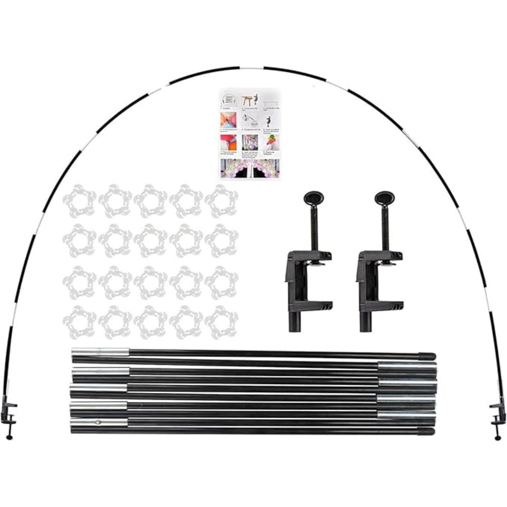 The Voircoloria Table Balloon Arch Kit includes 10 folded glass fiber poles, 2 C-shaped table slips, 20 balloon clips, and detailed instructions. Crafted from high-quality fiber, the foldable poles are strong, stable, and reusable, with a table distance compatibility of 4.5' to 6.5'. Assembly is quick and easy—follow the included instructions to set up in just two minutes, and disassemble for reuse. Ideal for birthdays, baby showers, gender reveals, anniversaries, graduations, Halloween, Christmas, or any event, this table balloon arch kit adds a festive and stylish centerpiece to your party décor.
