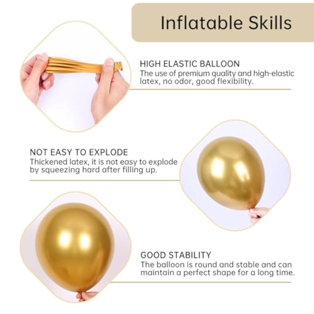 This black and gold balloon arch kit includes everything you need to create a stunning party backdrop featuring 71 black balloons 52 metallic gold balloons 10 gold confetti balloons 3 gold starburst balloons along with gold ribbons a balloon strip and glue dots. Made from premium quality natural latex the balloons are thick safe and can be filled with air or helium. With four different balloon sizes this kit adds a glamorous touch to birthdays graduations weddings anniversaries and more. Easy to assemble with included tools this set helps you create an elegant and festive balloon garland in no time.