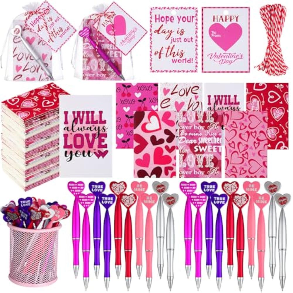 | Quantity For Your Needs: With A Package That Includes 35 Pens (5 Styles, 7 Pieces Each), 35 Organza Bags, 35 Notebooks (7 Styles, 5 Pieces Each), 35 Cards, And 1 White And Red Rope, These 141 Pieces Valentine'S Day Offer A Quantity To Cater To Various Occasions; Whether For Exchanges, Party Favors, Or Personal Gifts, This Supply Ensures Making Them Ideal For Sharing Appreciation | | Romantic Valentine'S Day Theme Design: Each Item Features A Design That Embodies Valentine'S Day; The Mini Notepad Size Is About 4.92 X 3.15 Inches, Each Notebook Has 16 Sheets, And These Favors Are Adorned With Romantic Motifs, Creating An Atmosphere For Many Celebrations; Valentine'S Day Ballpoint Pen Design Features 5 Interesting Words And Patterns, Such As [Be Mine], [True Love], [Xoxo], Heart, And Lip Print | | Gift Exchange Solution: These Notebooks And Pen Favors Are A Choice For Gift Exchanges, Allowing You To Express Appreciation To Friends, Family, Or Colleagues; The Combination Of Practical Items Like Notebooks And Pens With Designs Makes Them A Considerate Gift That Shows You Care; They Are Ideal Looking To Celebrate Relationships In A Meaningful Way | | Smooth Writing Experience: The Ballpoint Pens, Measuring About 5.3 Inches, Are Designed For Comfortable Handling And Smooth Writing; Their Size And Lightweight Plastic Material Ensure That They Are Easy To Grip, Allowing For Effortless Writing; Whether Jotting Down Notes Or Personal Messages, These Pens Provide A Reliable Writing Experience | | Reliable Materials: Crafted From Quality Materials, Including Plastic For The Pens And Paper For The Notebooks And Cards, Favors Prioritize Reliability And Safety; The Organza Bags Add An Elegant Touch While Providing A Secure Way To Present Your Gifts; This Selection Of Materials Ensures That Each Item Is Suitable For Various Uses | |