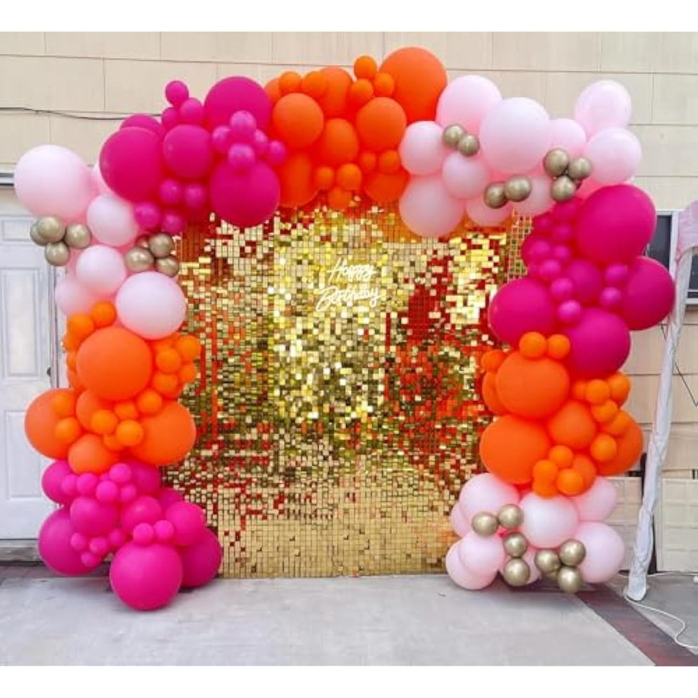 This Orange Balloon Garland Arch Kit includes 143 high-quality latex balloons in assorted sizes—18" (3 pcs), 12" (30 pcs), 10" (55 pcs), and 5" (55 pcs)—along with a 16 ft garland strip and 100 glue dots, perfect for creating a stunning orange-themed balloon display. Made from durable, non-toxic latex, the balloons can be filled with air or helium for versatile decorating options. The kit also includes essential assembly tools for effortless setup—simply insert balloon knots into the strip, secure with glue dots, and enhance with ribbons for added beauty. Ideal for birthdays, baby showers, weddings, tropical events, Halloween, summer parties, and more, this bright orange balloon arch brings a lively, cheerful atmosphere to any celebration.